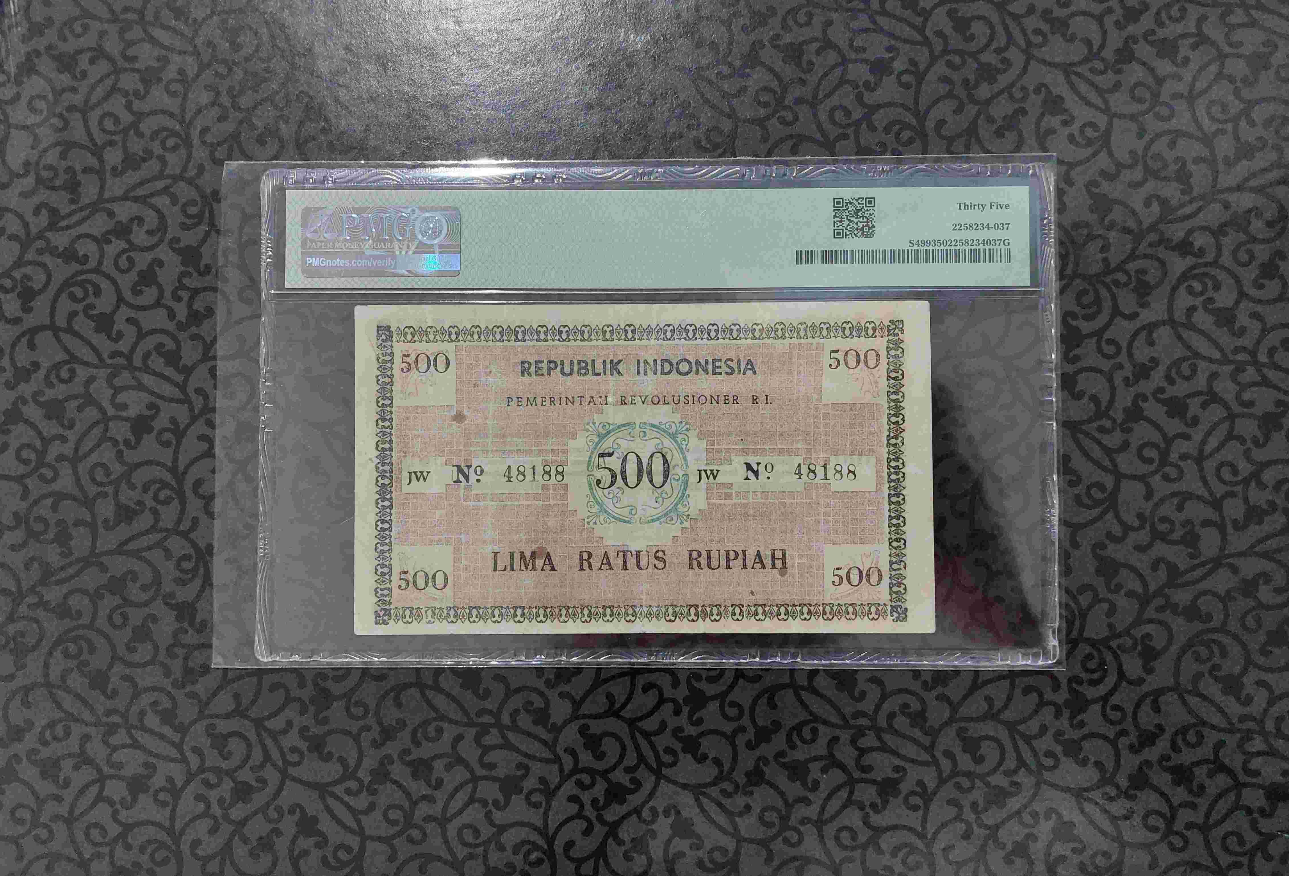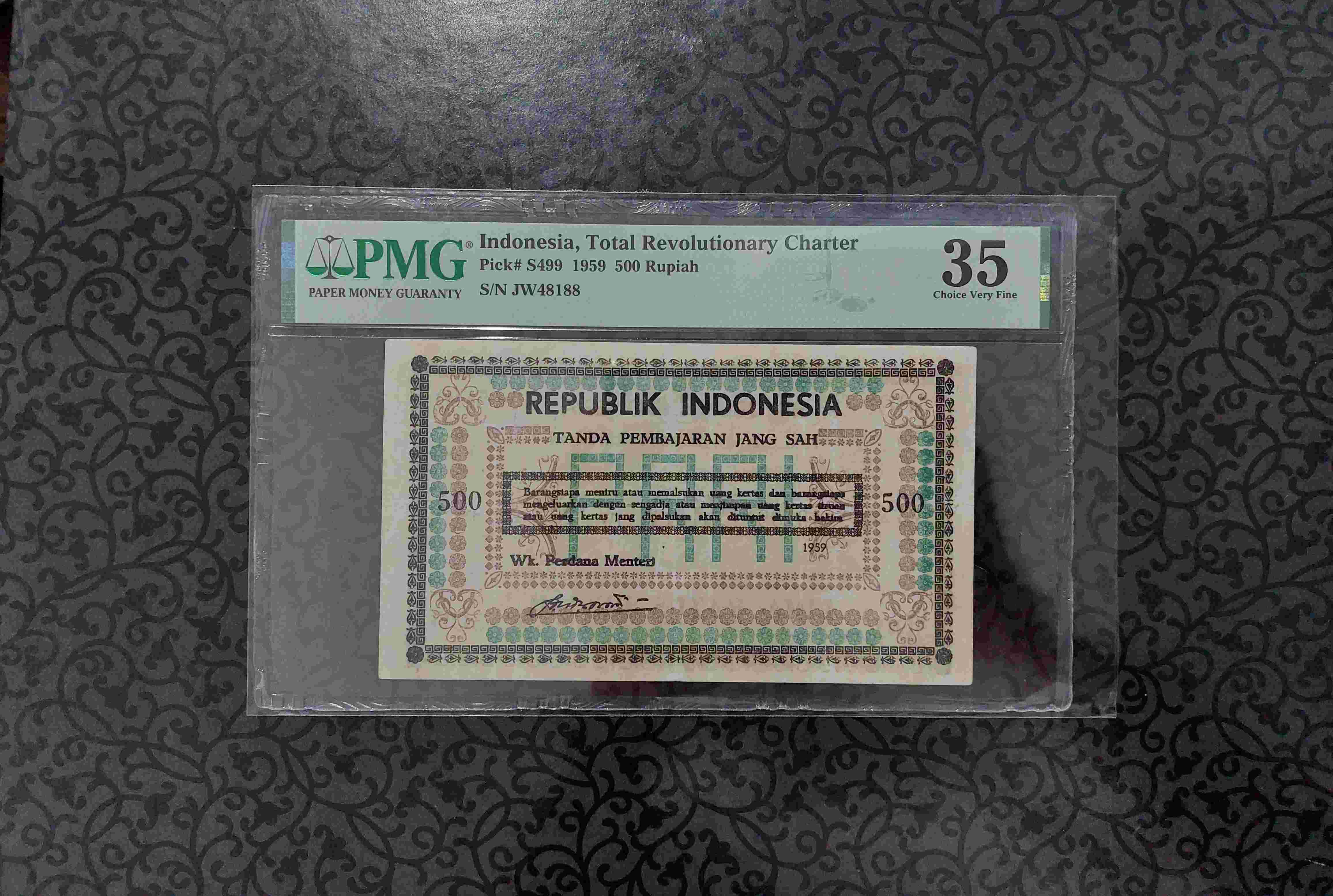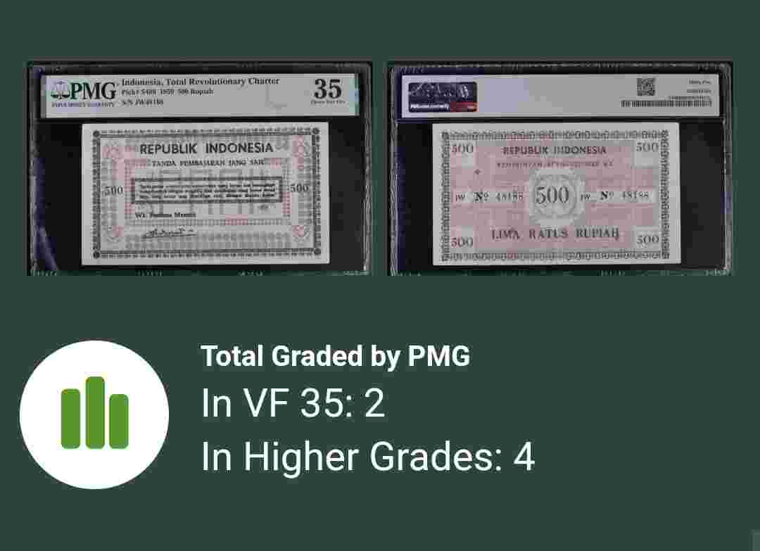 Uang Kuno 500 Rupiah PRRI 1959 PMG 35 Tanpa Catatan dijamin keasliannya total populasi di PMG hanya 8 lembar sangat langka dengan kondisi bagus.