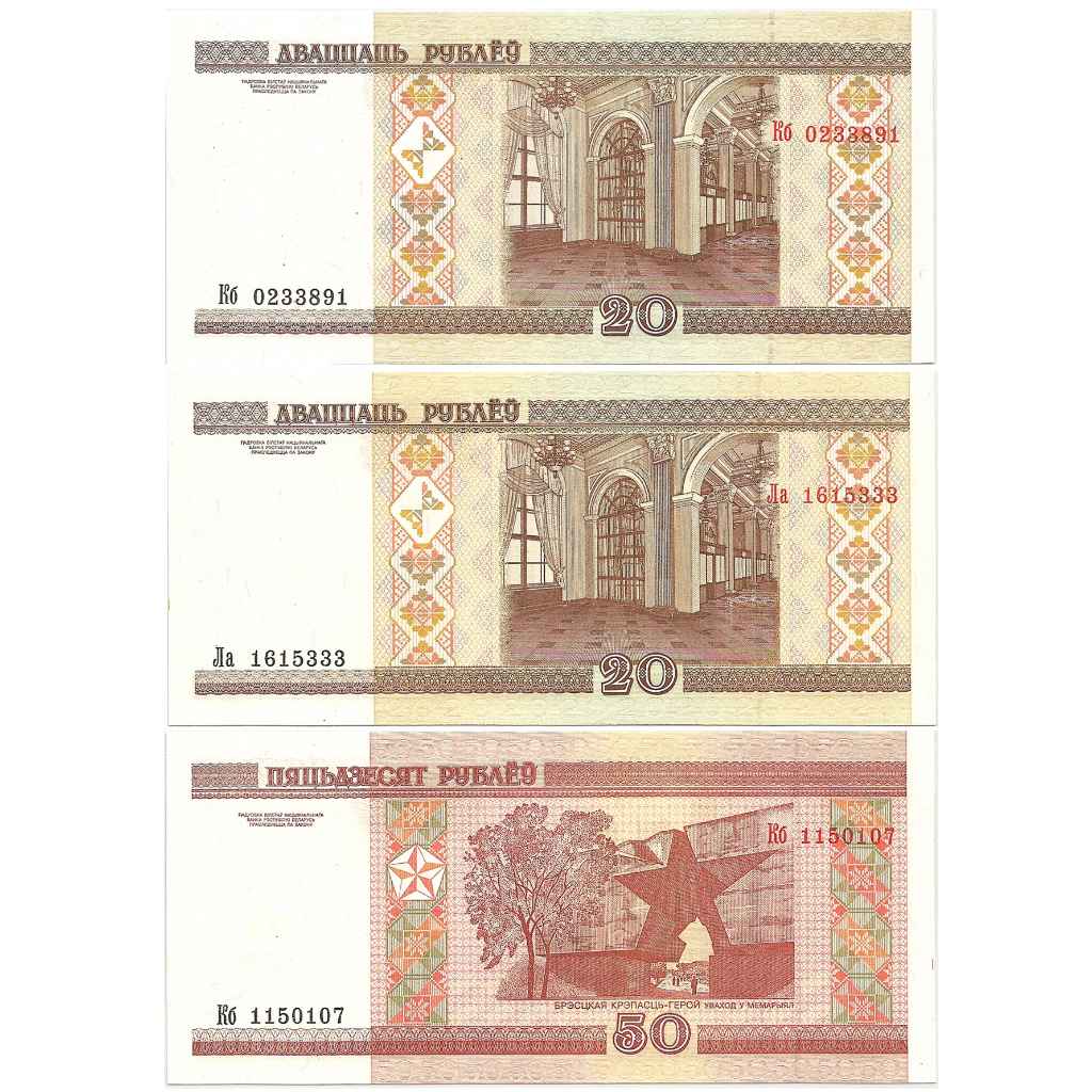 Uang Kuno Belarus thn 2000, 20, 20 & 50 Ruble (3 pcs)