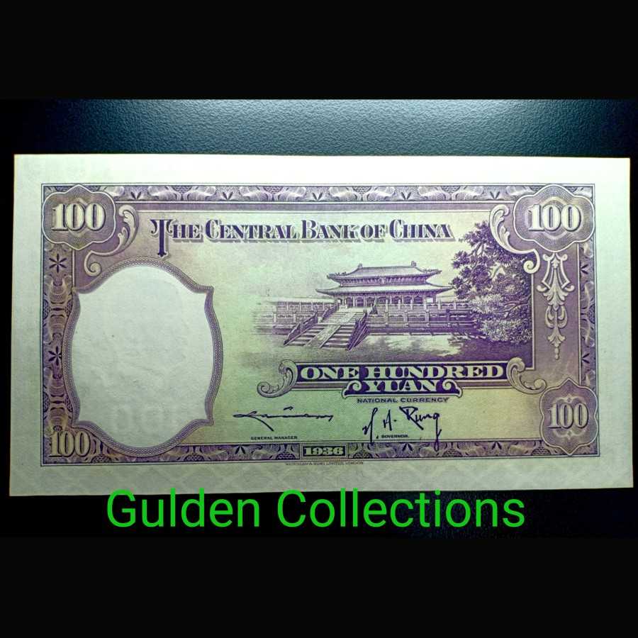 Uang Kuno China 100 Yuan 1936 UNC