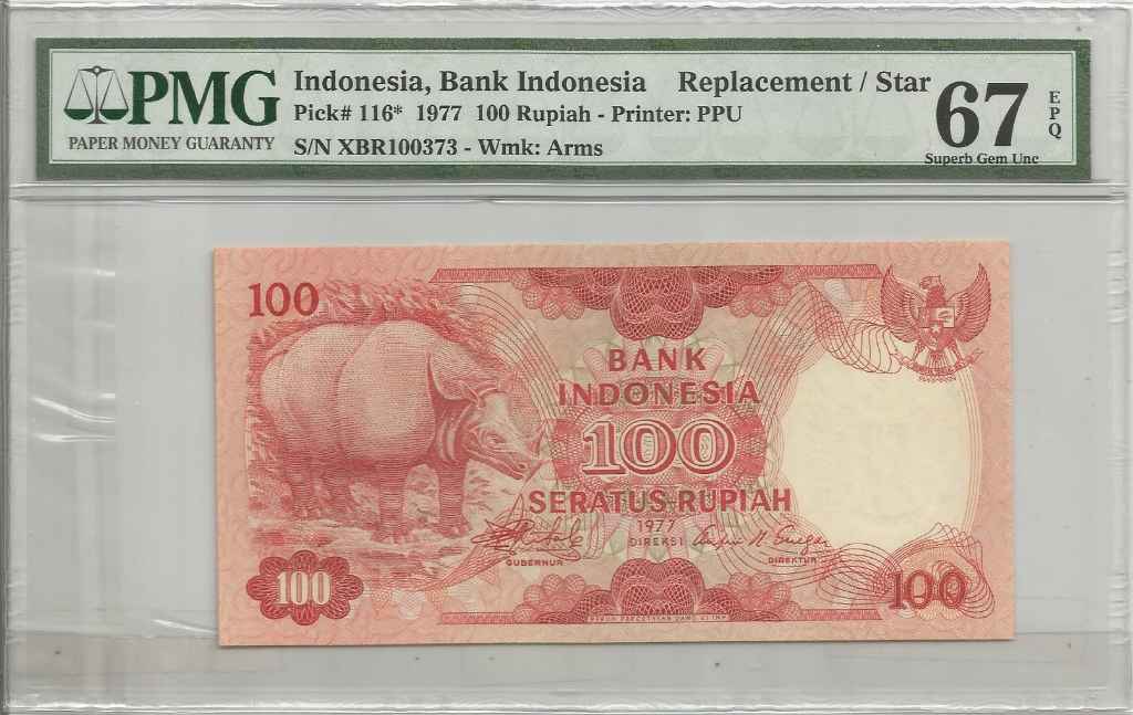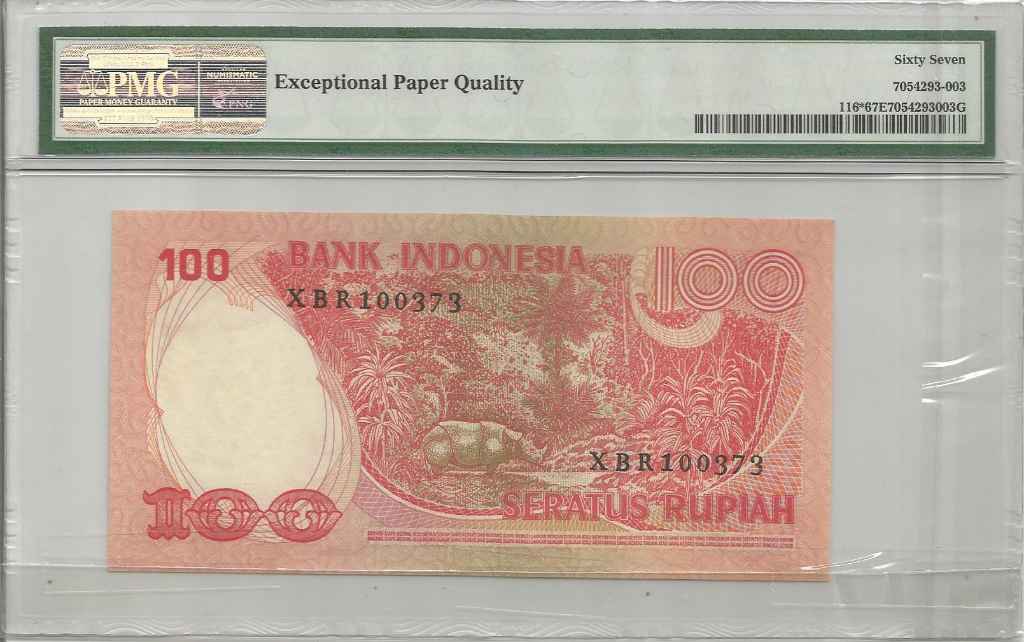 Nama barang : Uang Kuno Indonesia 100 Rupiah Badak Replacement PMG 67