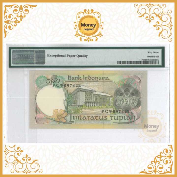Nama barang : Uang Kuno Indonesia 500 Rupiah Anggrek PMG 67