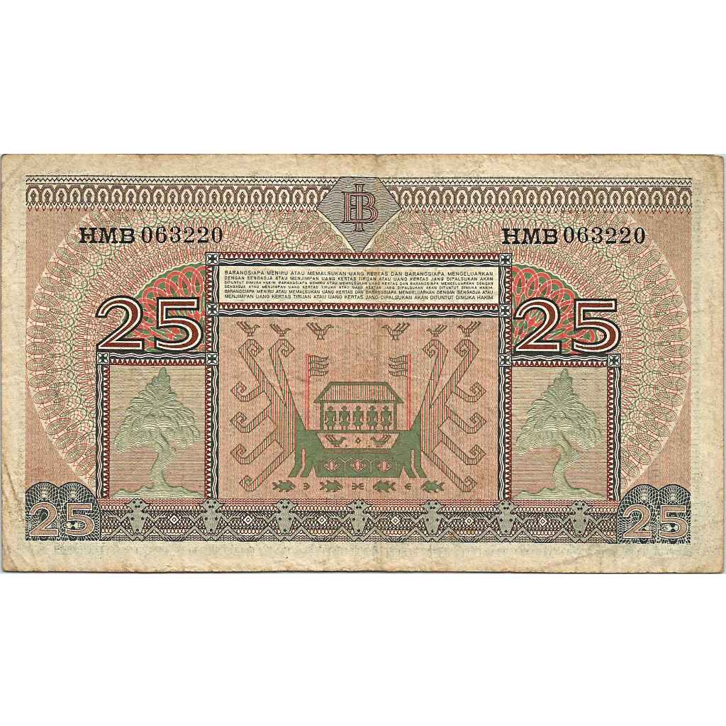 Uang Kuno Indonesia (Seri Kebudayaan) 1952 25 Rupiah, VF+