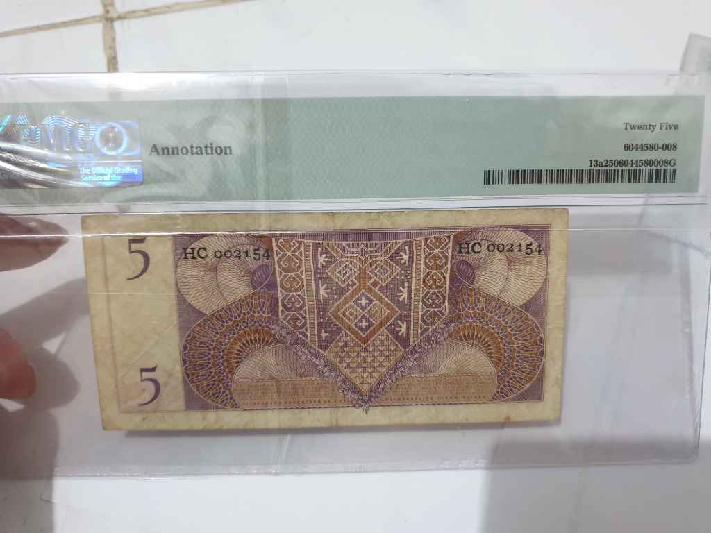 Uang soekarno riau rp5 1960 aunc pmg 55 rare