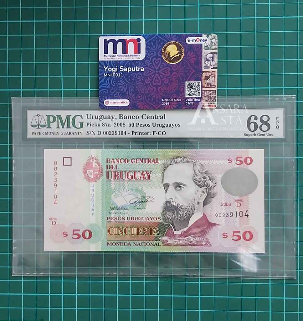 Nama barang : Uang Uruguay 50 Pesos th 2008 68 PMG 68 EPQ