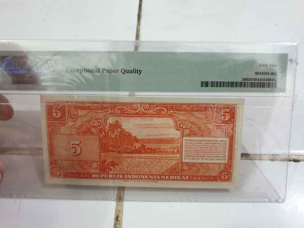 Uang soekarno riau rp5 1960 aunc pmg 55 rare