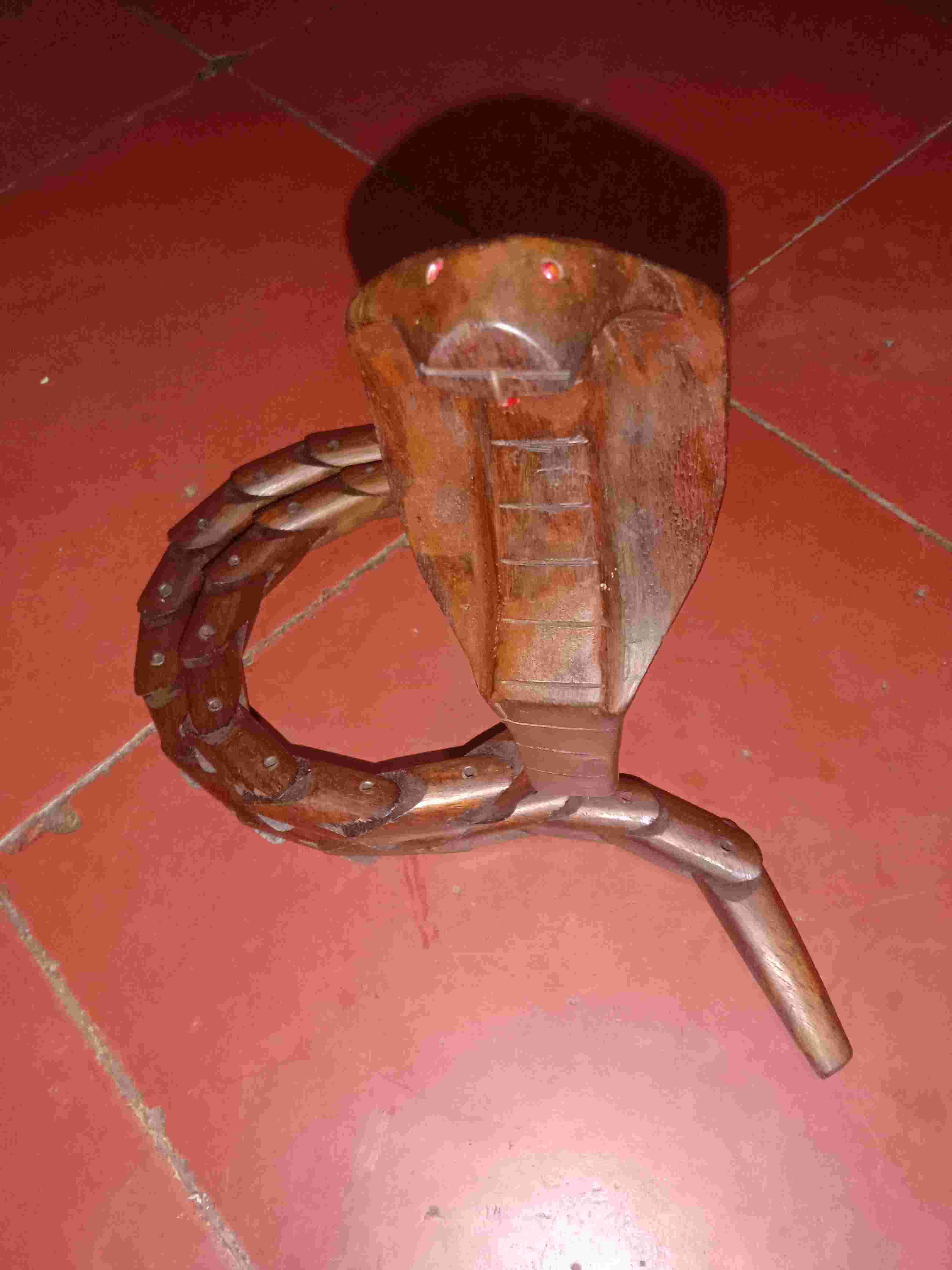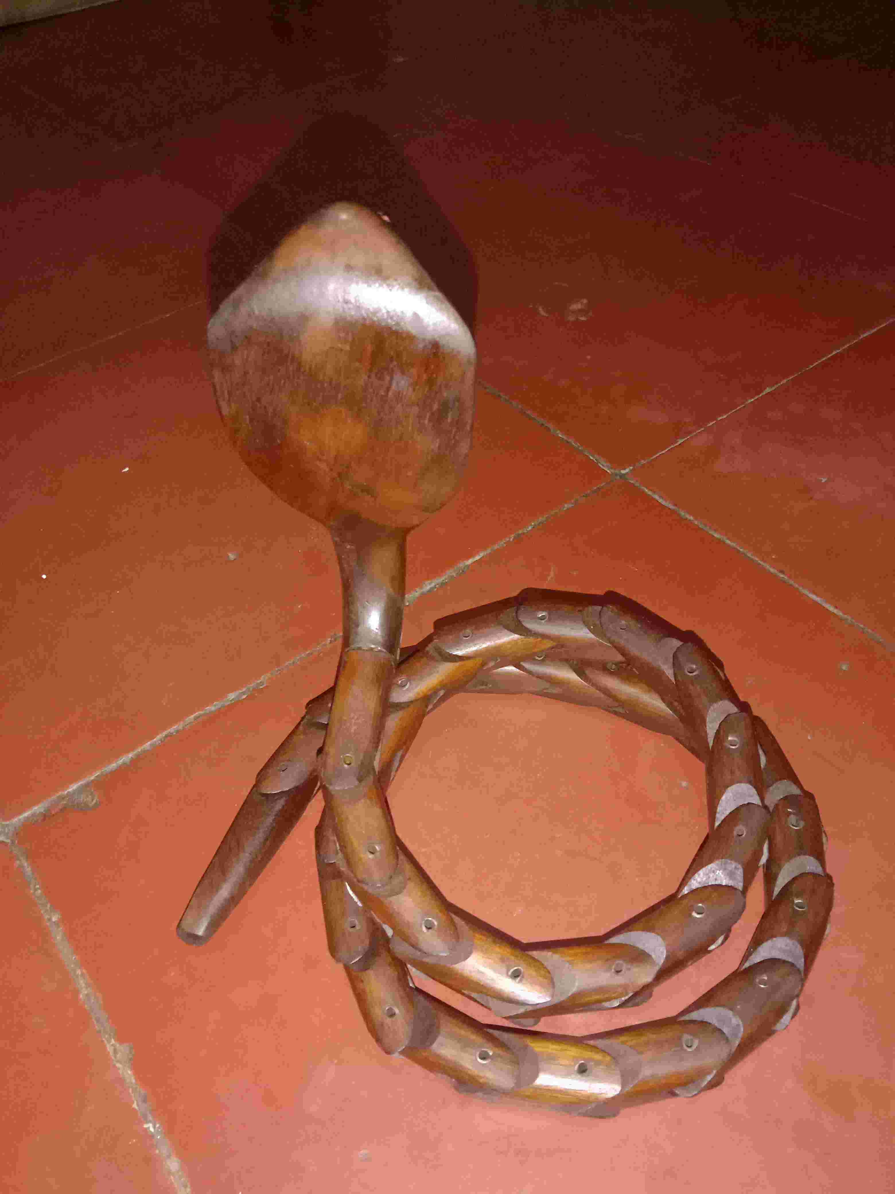 Panjangan berbentuk ular yang terbuat dari kayu di bentuk dengan presisi sehingga hampir menyerupai bentuk ular sebenarnya yang bisa di bentuk seperti ular dengan susunan kayu yang bisa fleksibel dengan ukuran 100x7x17cm(pxlxt)