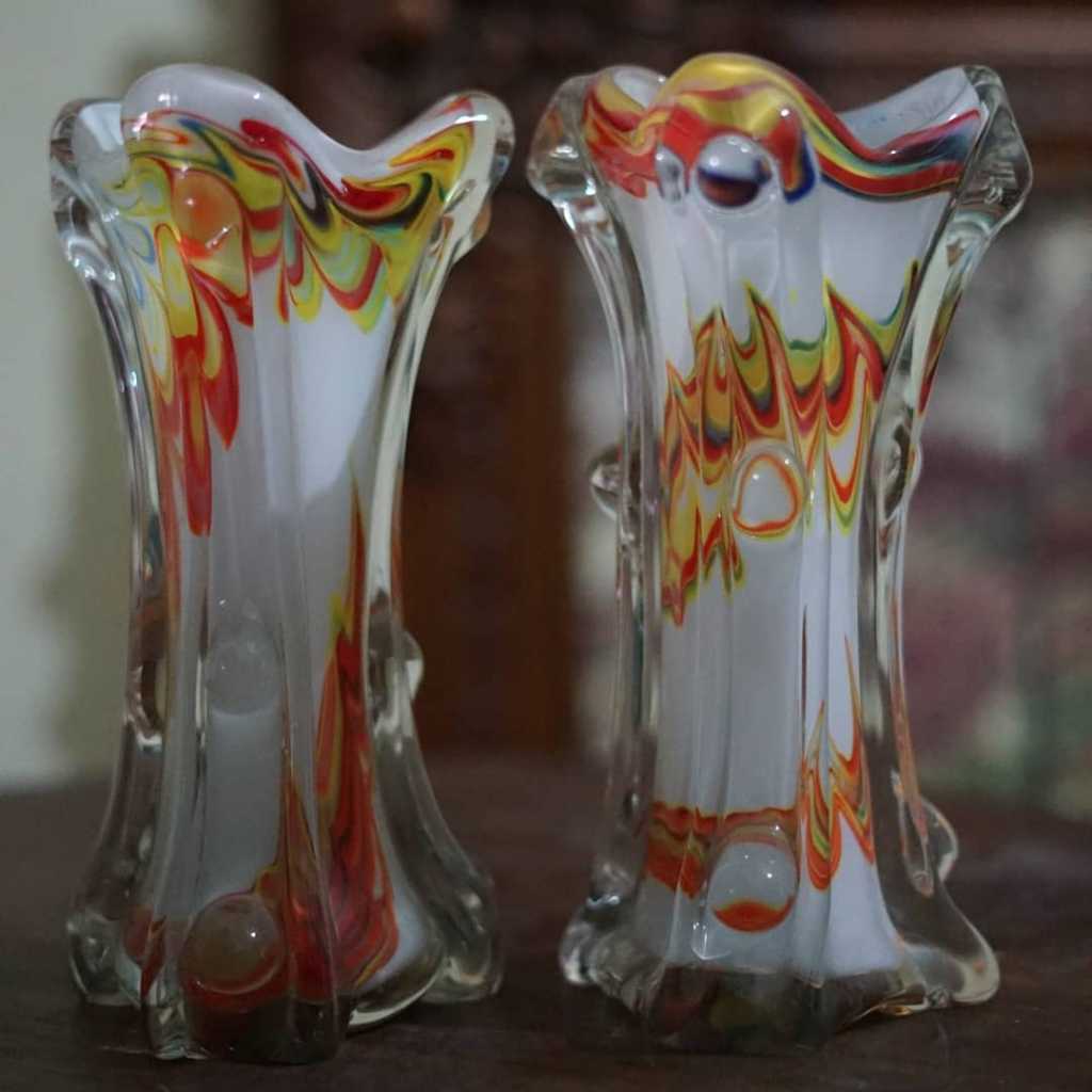 Barang Antik Sepasang Vas Kristal Eropa Hijau Tua Utuh Mulus Jadul Kuno