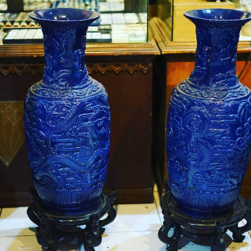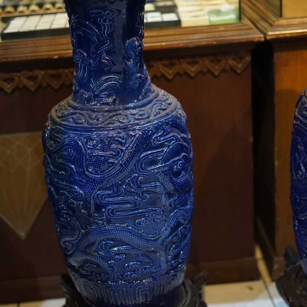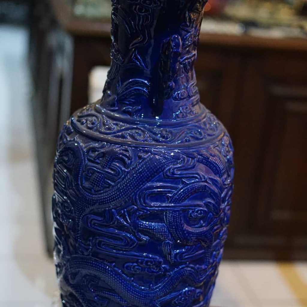 BLUE VASE//VASE BIRU UKIRAN TIMBUL, 1pair//Kondisi baik//Check