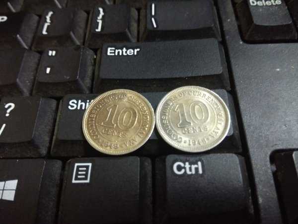 X 763 Malaya 10 Cent 2 keping Tahun 1948 Dan 1949 Sesuai Gambar