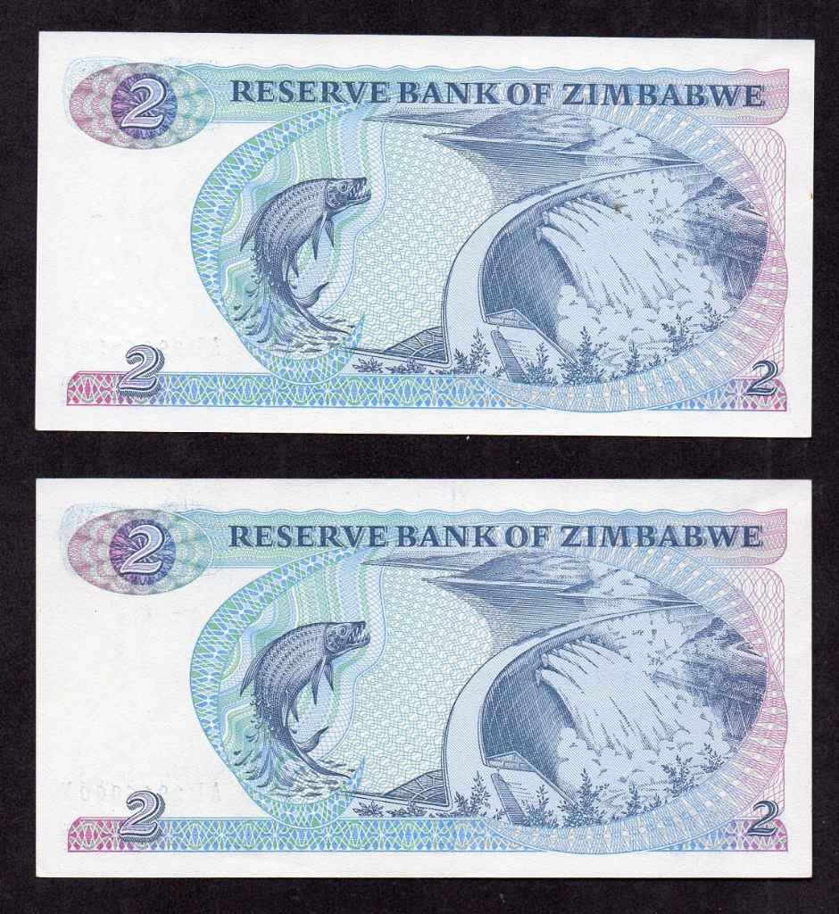 Zimbabwe 2 Dollars 1994 Type B Consecutive Pair