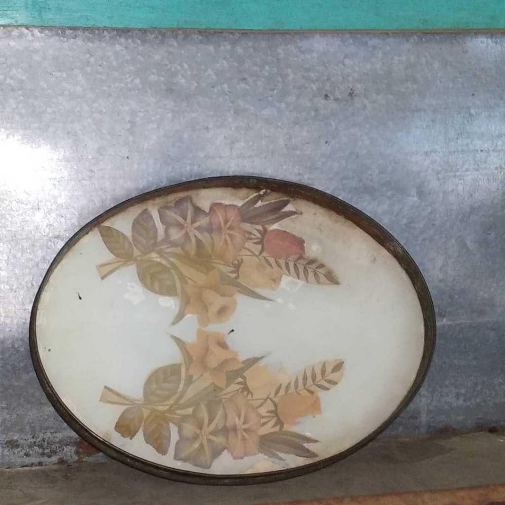 Barang Antik Vas Kristal Eropa Tua Motif Lukis Timbul Utuh Kuno Antik