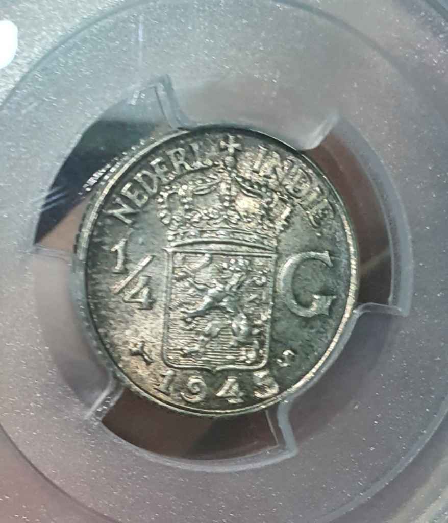 1945 Netherlands East Indies 1/4 Gulden PCGS MS 63 Golden Toning