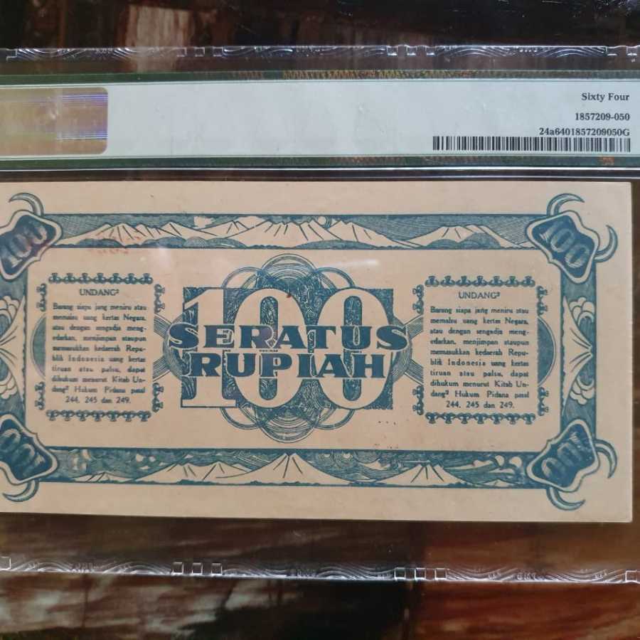 1947 Rp 100 kris biru Pmg 64