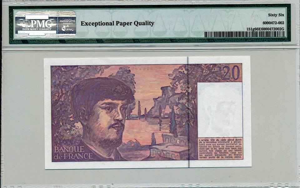 1993 FRANCE FRENCH 20 FRANC BANK NOTES PMG 66 EPQ PICK 151
