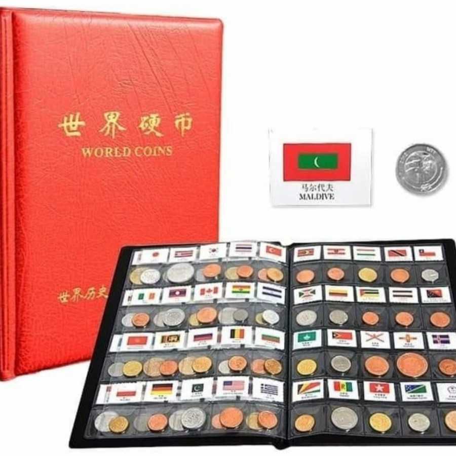 60 koin negara di dunia, sudah termasuk buku album dan nama negara dalam bahasa Inggris dan mandarinKondisi : 90% UNCBerat : 500 gram