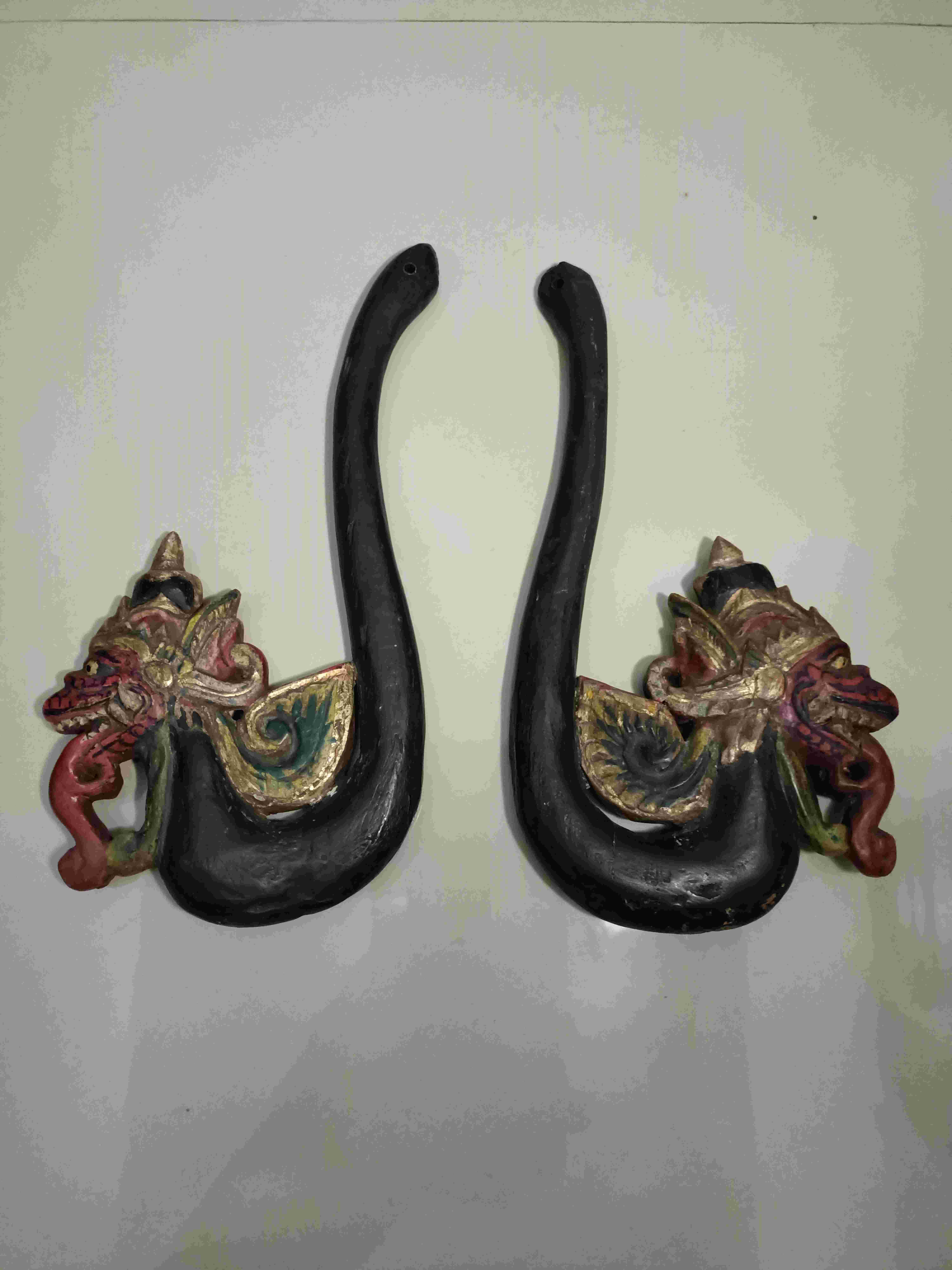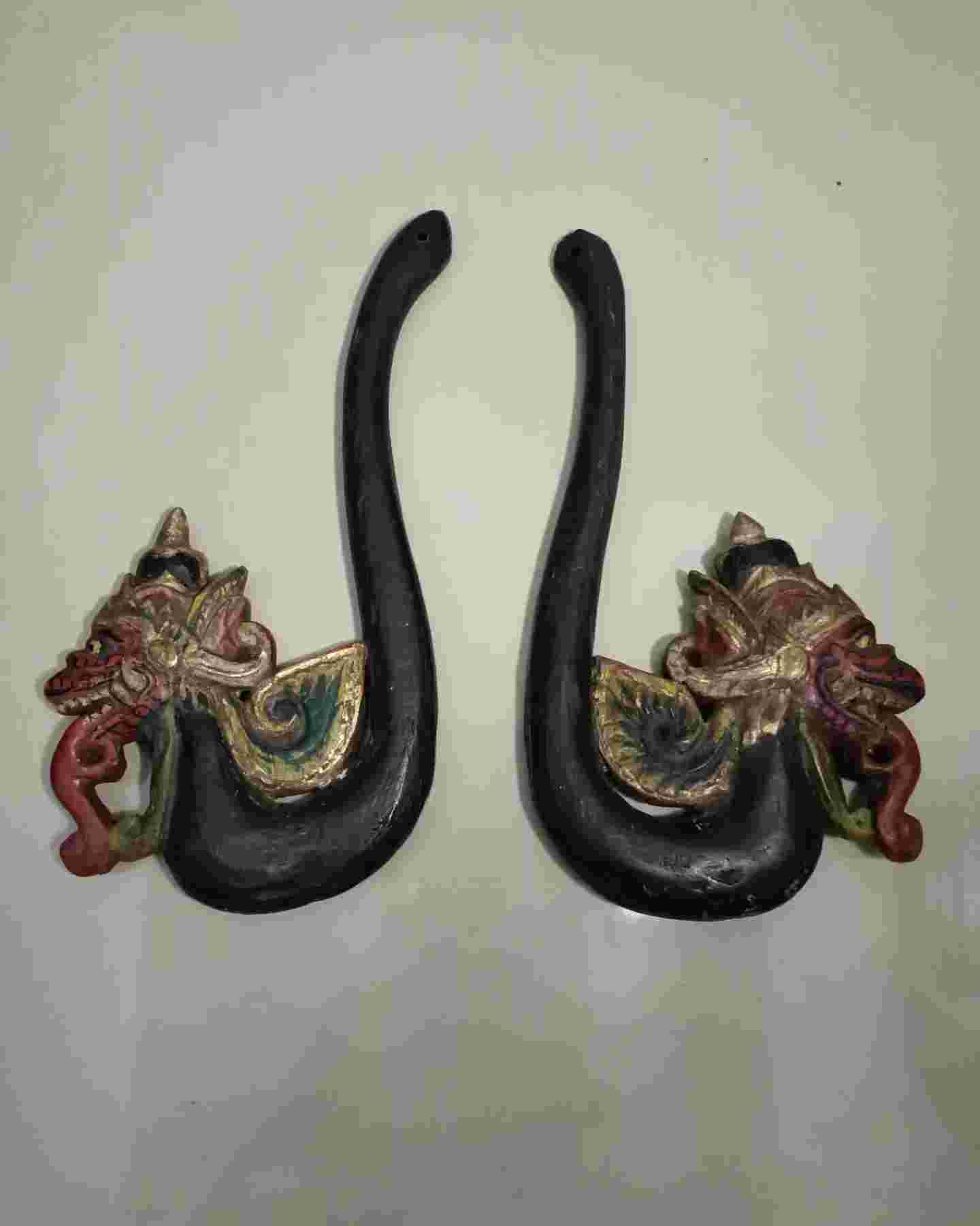 Sepasang Gantungan Kelambu Material Kayu Lawasan