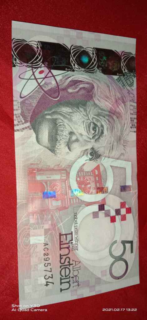 Tesnote Albert Einstein produk dari sebuah perusahaan de la rue yang bergerak di bidang security printing