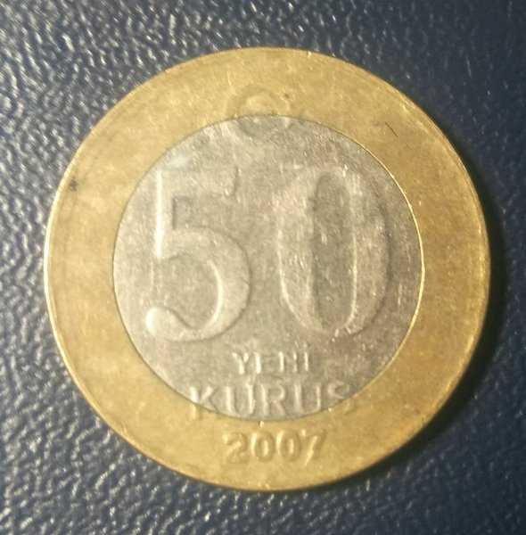 A1696 Koin Bimetal 50 Yeni Kurus TURKEY 2007 Kondisi Sesuai Gambar
