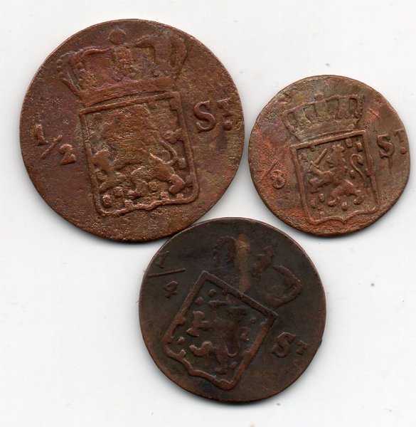 A4033 Set 3 Keping beda Nominal Ned Indiie Stuiver Tahun 1826 Seperdelapan seperempat dan setengah