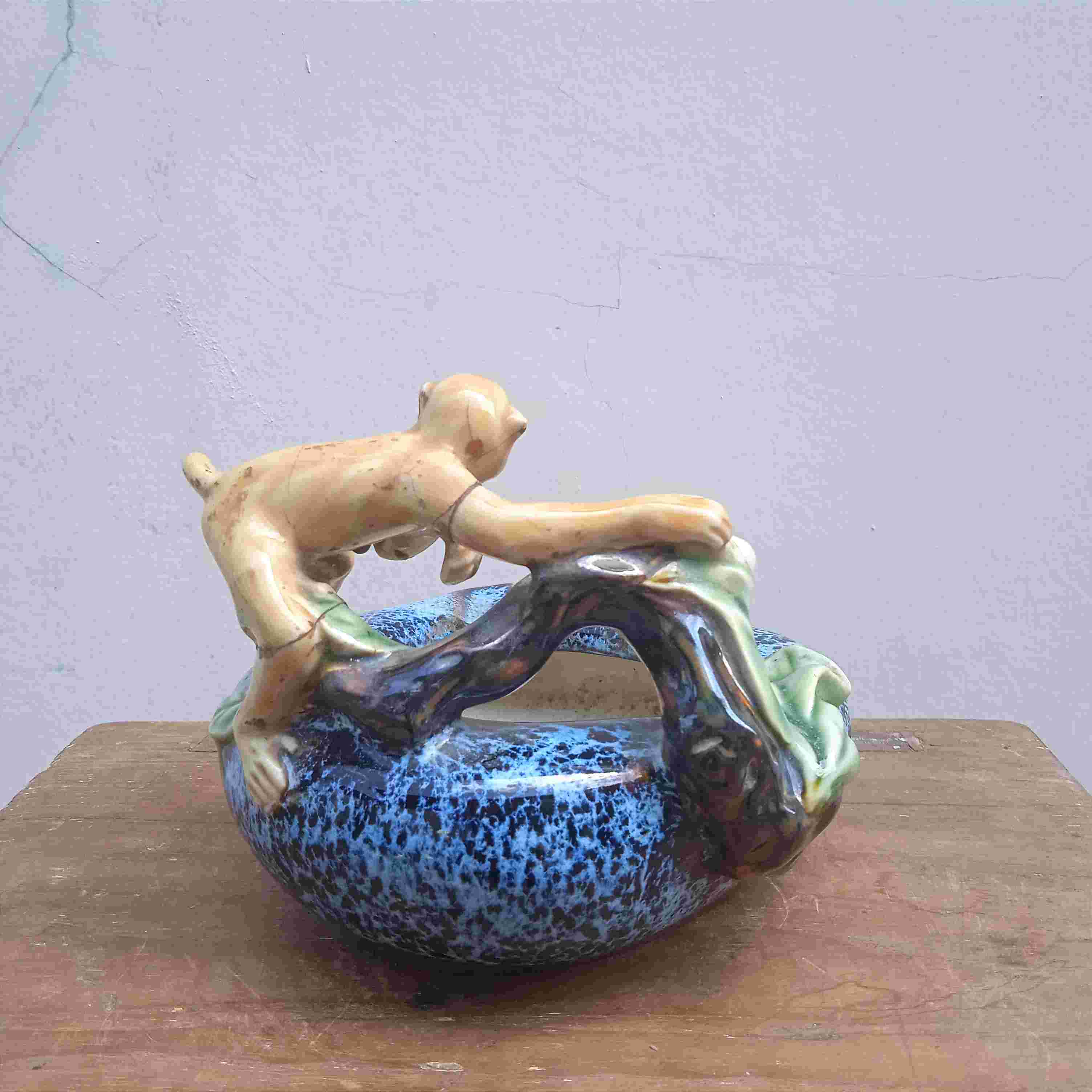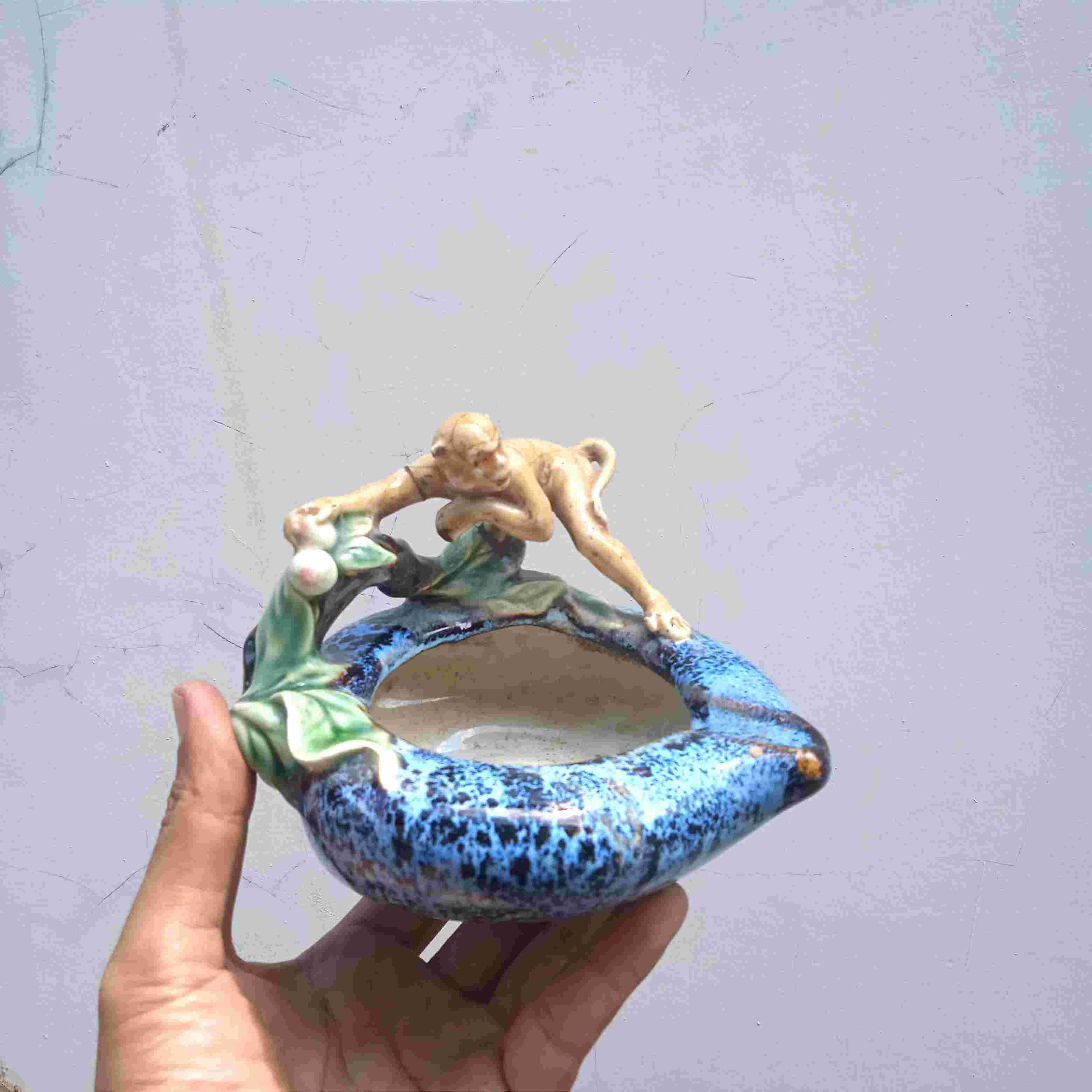 Antik Asbak Porcelain Cina Motif Kera Langka Unik Jadul