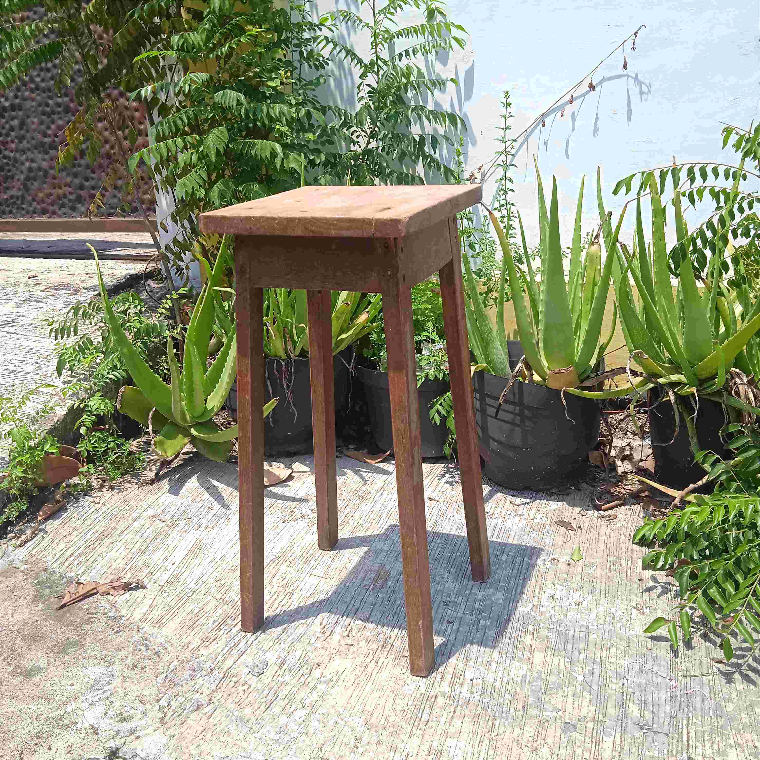 Bangku / Standing Kayu Jati Sambungan Nagel (Tanpa Paku) Kokoh Kuat Ukuran - Tinggi : 52 cm - Lebar Topper : 24 x 24 cm Warna Masih Original Kondisi Utuh Minat Silahkan