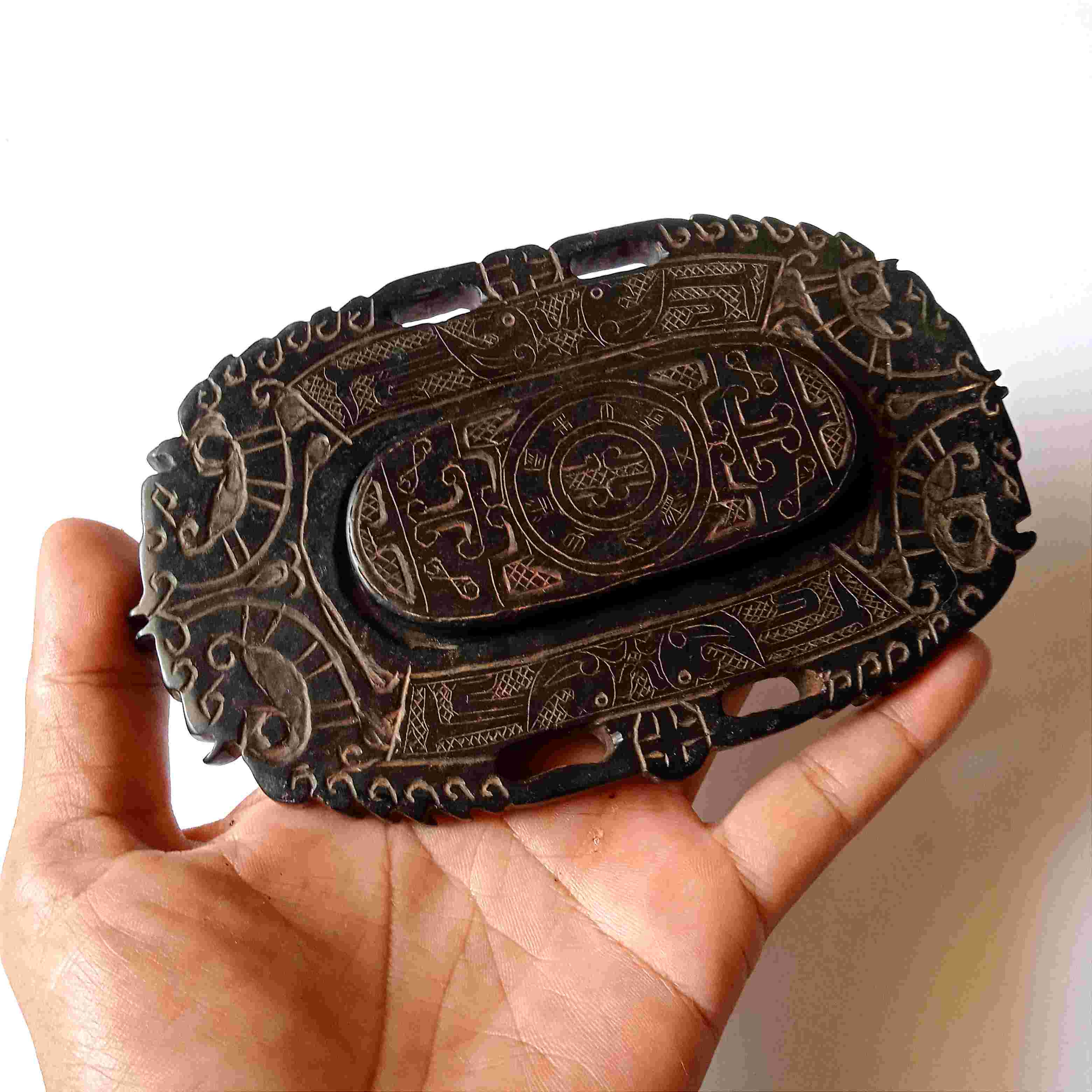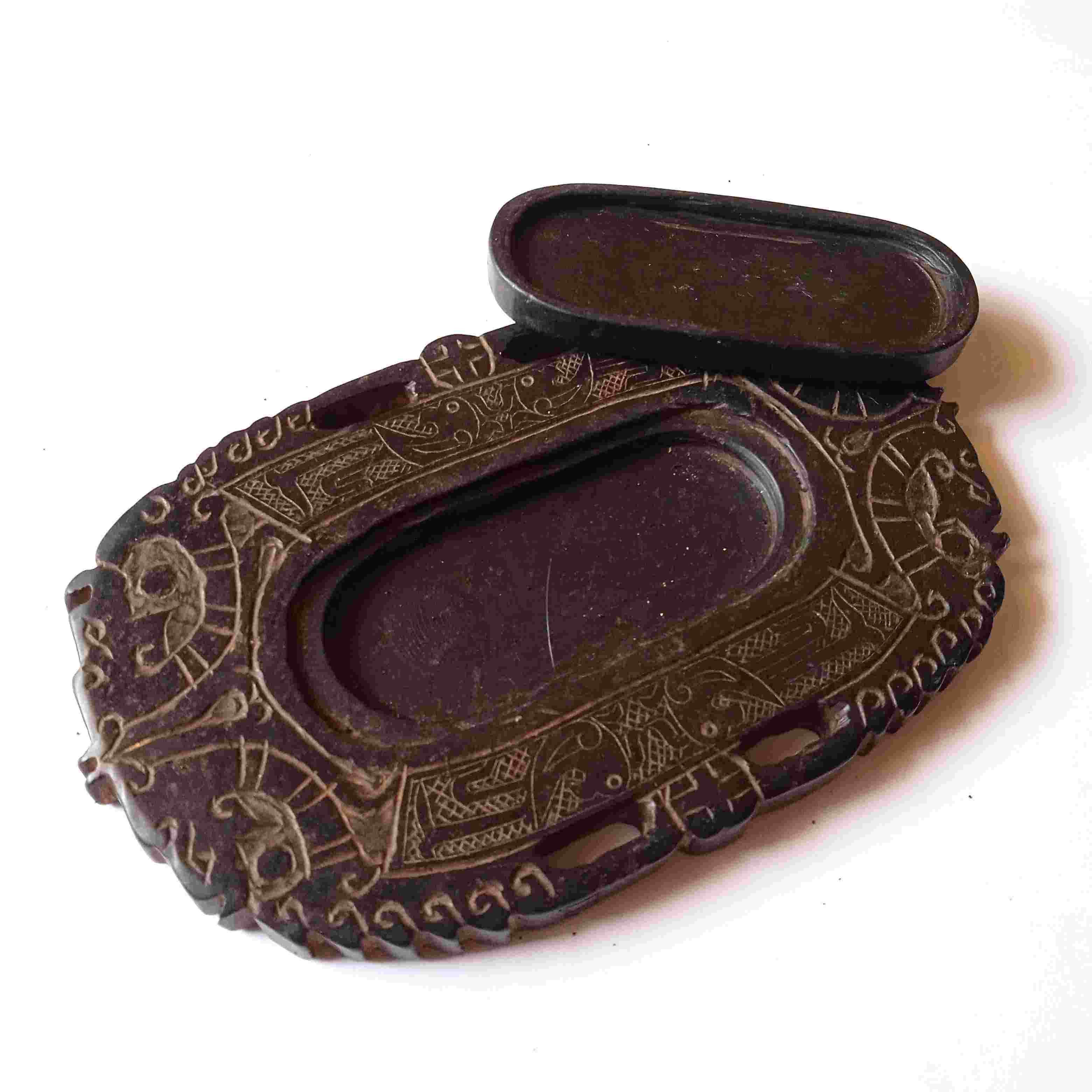 Old Chinese Ink Pot Tempat Tinta Cina Kuno Bahan Ukir Batu Cina Ukuran : 16 x 10 cm Kondisi Utuh Mulus Original Lama Minat Silahkan
