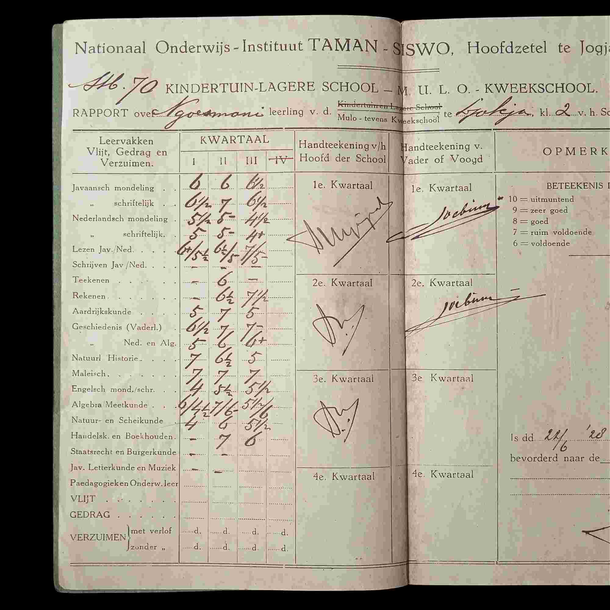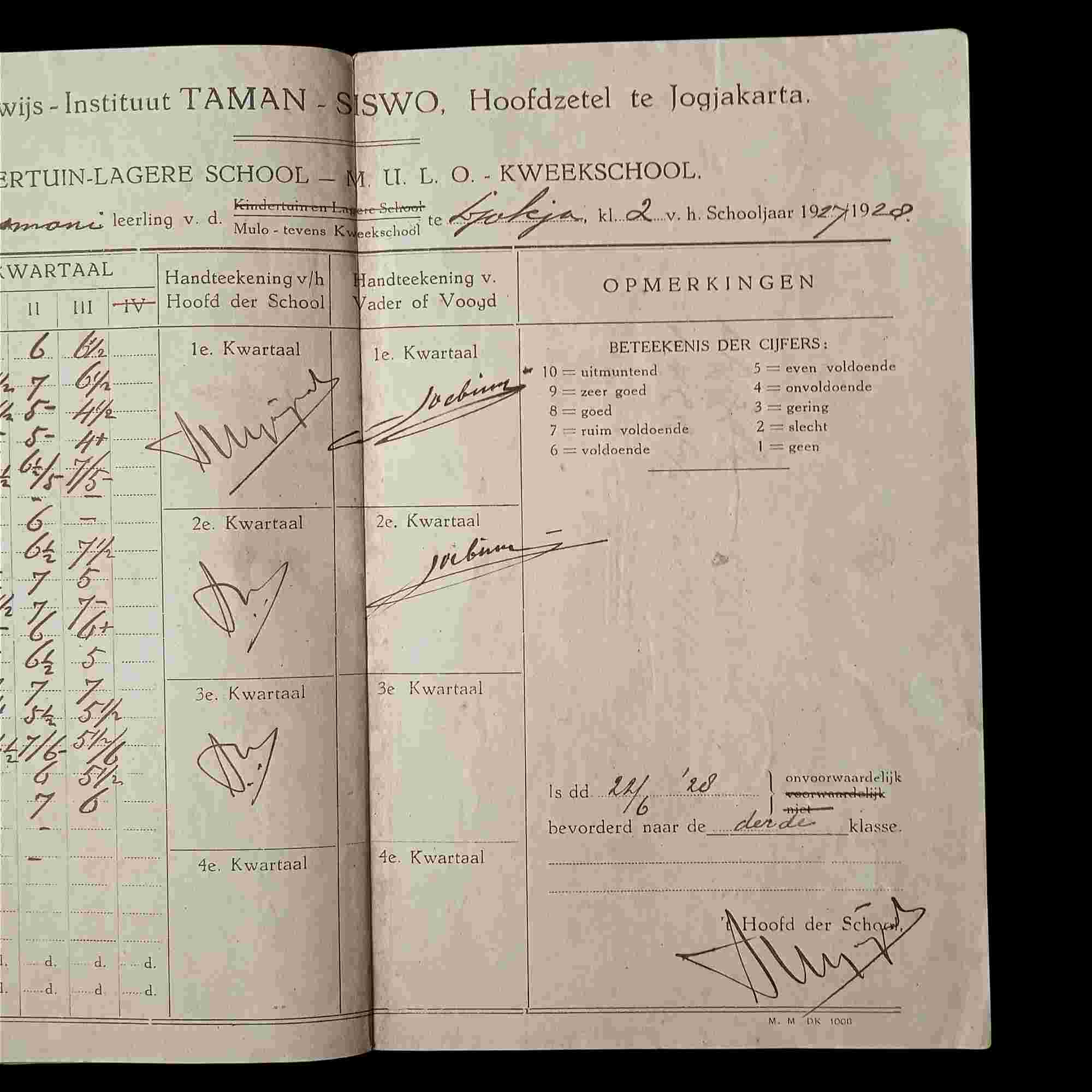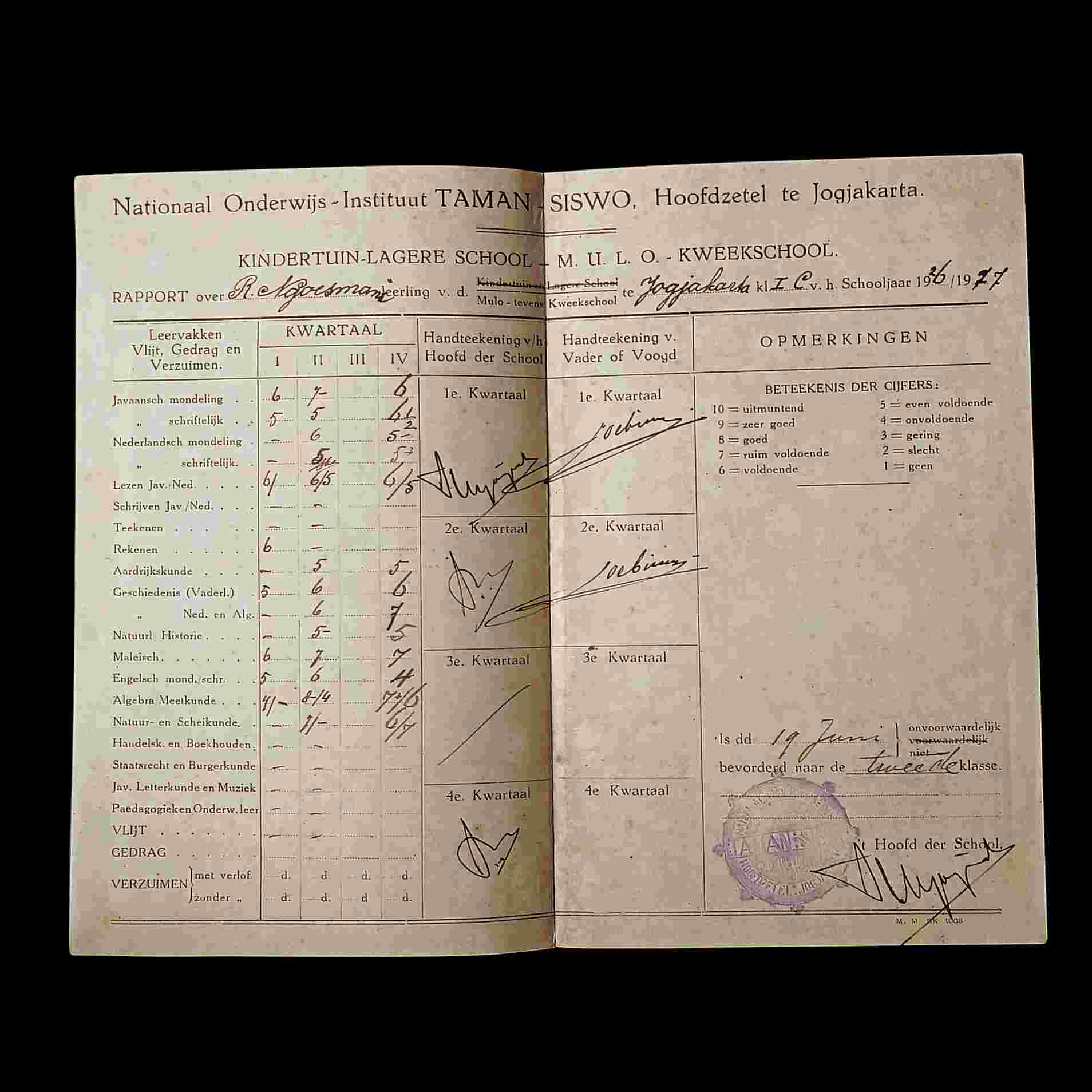Raport Sekolah Bangsawan Era Kolonial HOLLANDSH - INLANDSCHE SCHOLEN RAPPORT VAN R.NGOESMANI 1915 - 1925 Hard Cover, isi 12 Lembar Kondisi Utuh Bagus Layak Koleksi Minat Silahkan