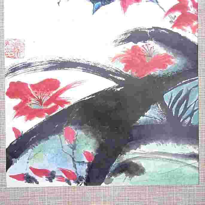 Lukisan Kertas Cina Lama Motif Sepasang Burung Original Tinta Basah Ukuran Frame : - P.30cm x L.60cm Kondisi Utuh Minat Silahkan