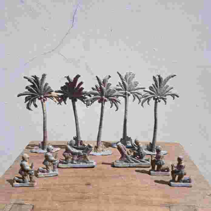 Antik Mainan Anak Timah Tentara + Pohon Kelapa Padat Tua Utuh Kuno
