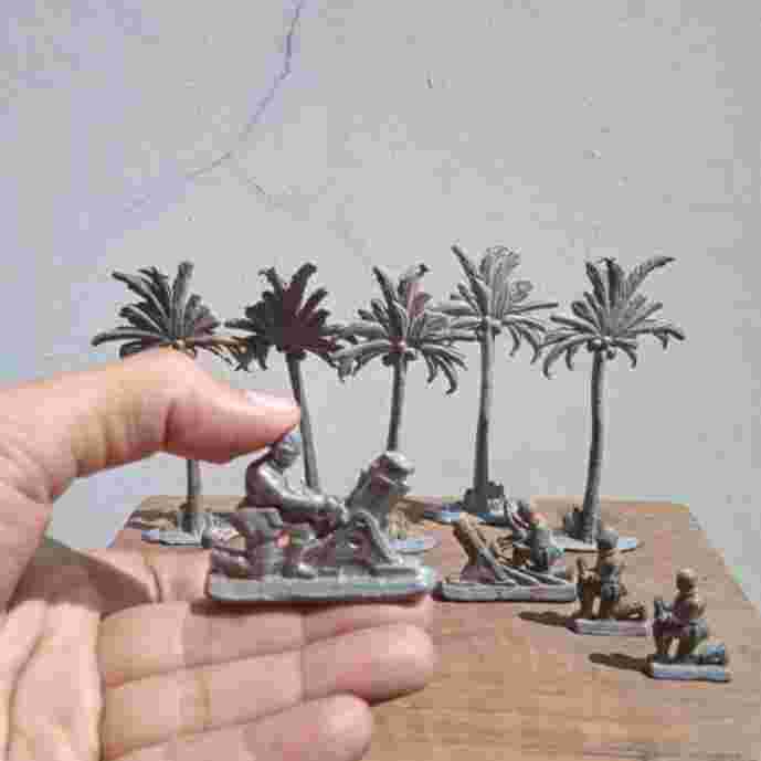 Mainan Timah Padat Tua Terdiri : - Tentara 6 pcs - Pohon Kelapa 5pcs Kondisi Utuh Minat Silahkan