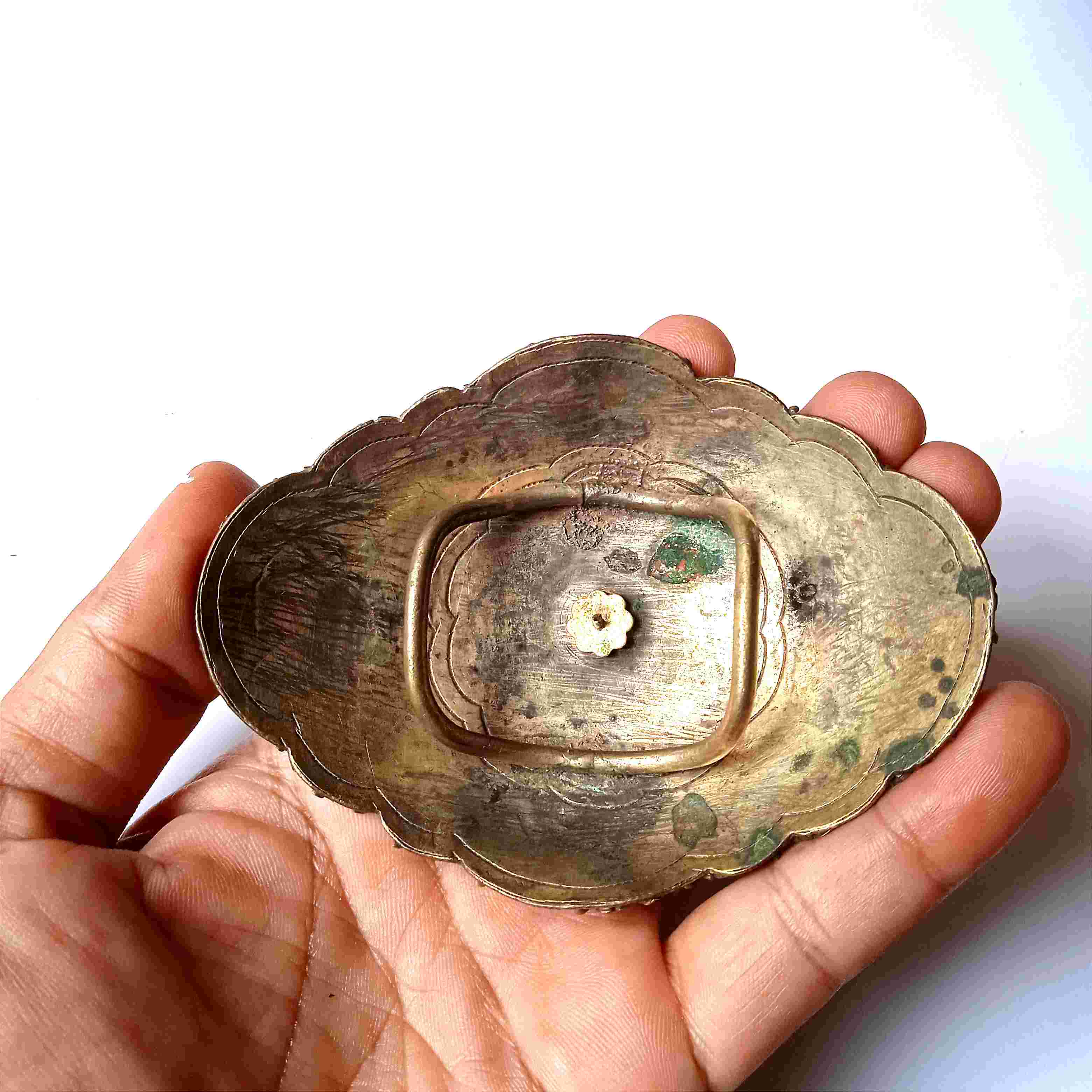 Buckle Mata Sabuk Pengantin Peranakan Bahan Perunggu Ukuran - Panjang : 10 cm - Lebar : 7,5 cm Kondisi Utuh Original Lama Tua Layak Koleksi