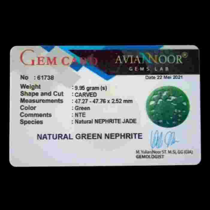 Old Chinese Pendant Narural Green Nephrite Jade Doubel Carved 47,27 - 41,37 x 2,76 mm Bersertifkat Gemologist Kondisi Utuh Minat Silahkan