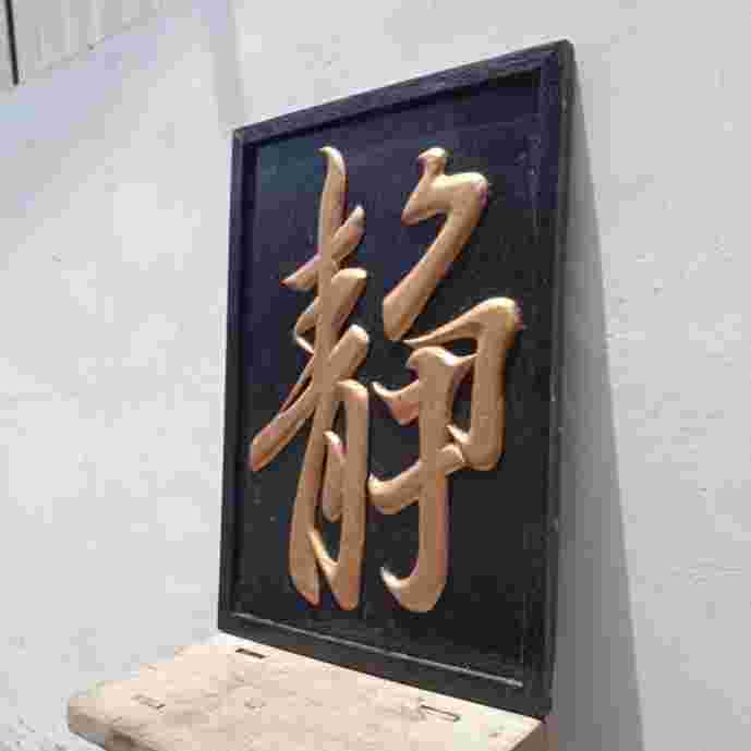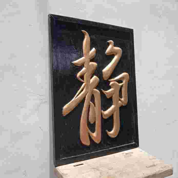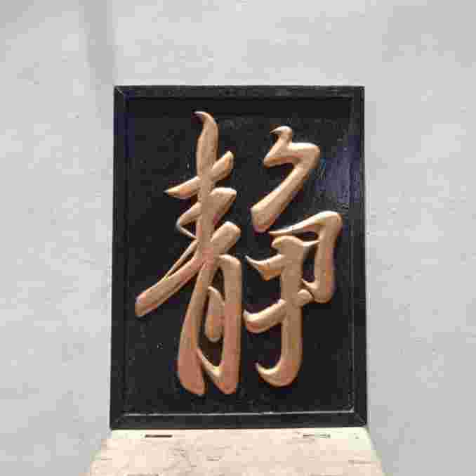 Antik Papan Liyan "SENYAP/DIAM" Kayu Jati Huruf Timbul Utuh Tua Kuno