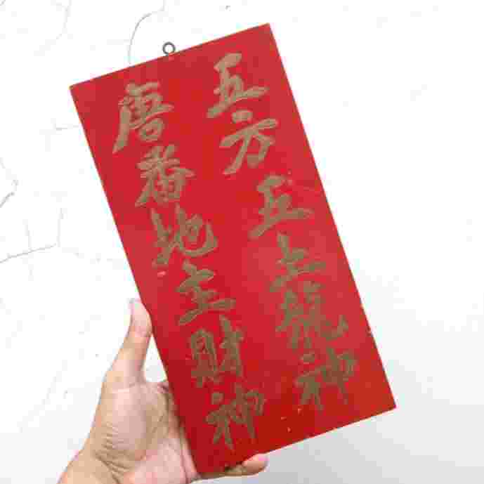 Papan Liyan Thi Kong Pai Dewa Langit Ukir Cungkit Kayu Ukuran : - 17 x 38 x 1 cm Kondisi Utuh Minat Silahkan