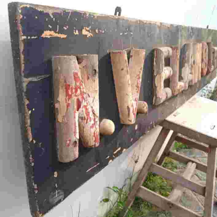 PAPAN NAMA / PLANG PERUSAHAAN ERA KOLONIAL N.V. ELANO LTD Yang Berdiri Di Semarang Papan Letter Kayu Jati Warna Original Semua Masih Aslinya Ukuran : - Panjang : 150cm - Lebar : 28,5cm - Tebal Papan : 1.5cm - Tebal Letter : 2.5c