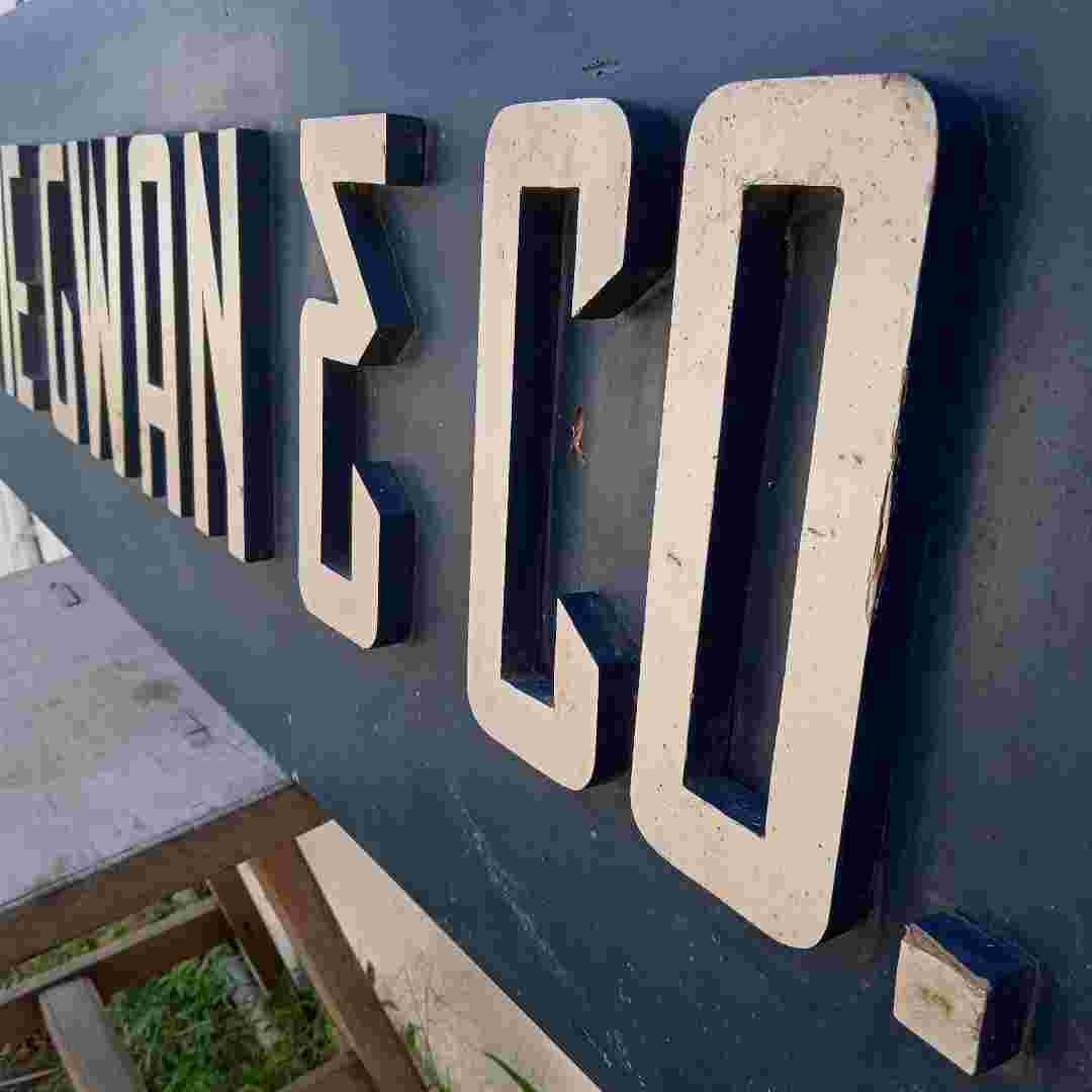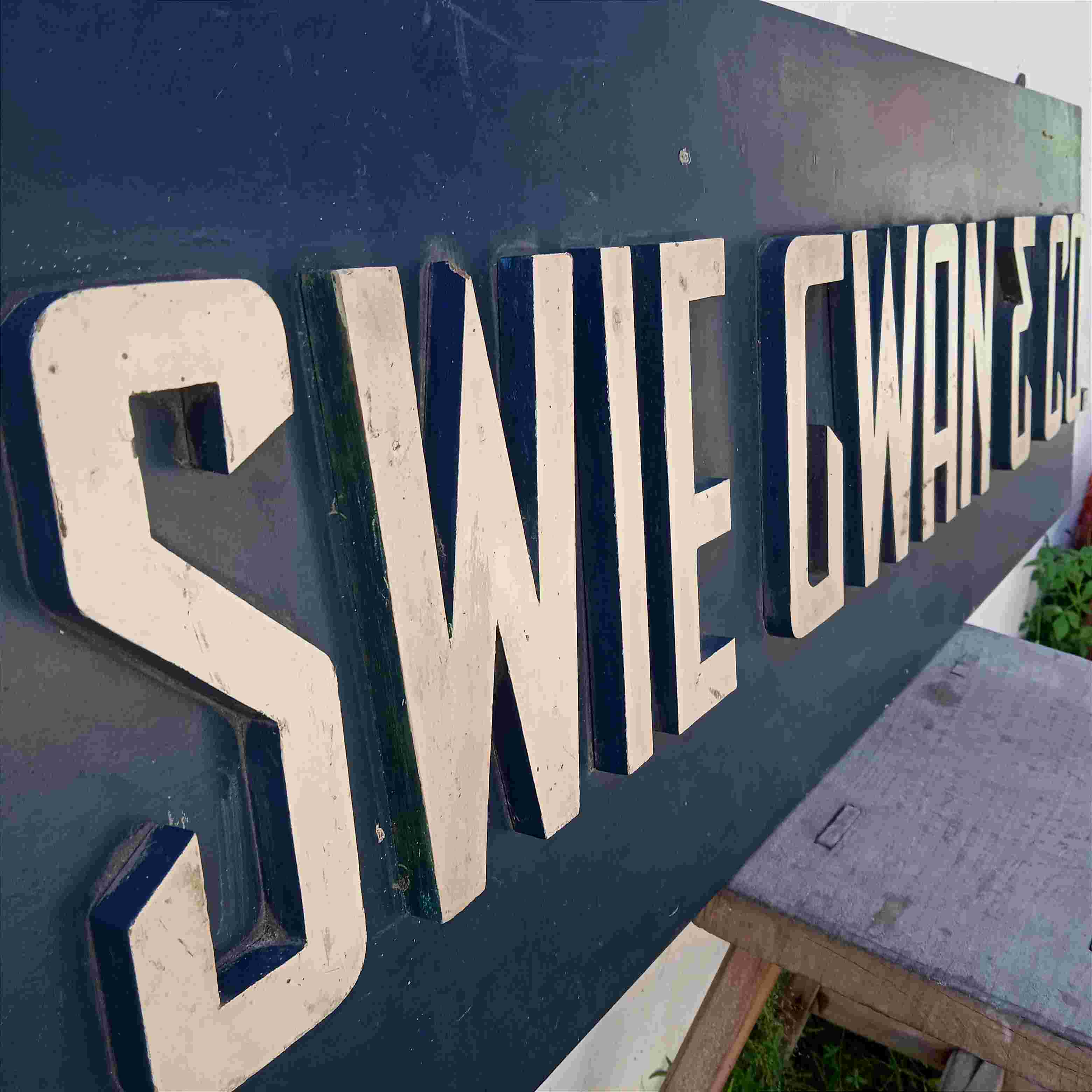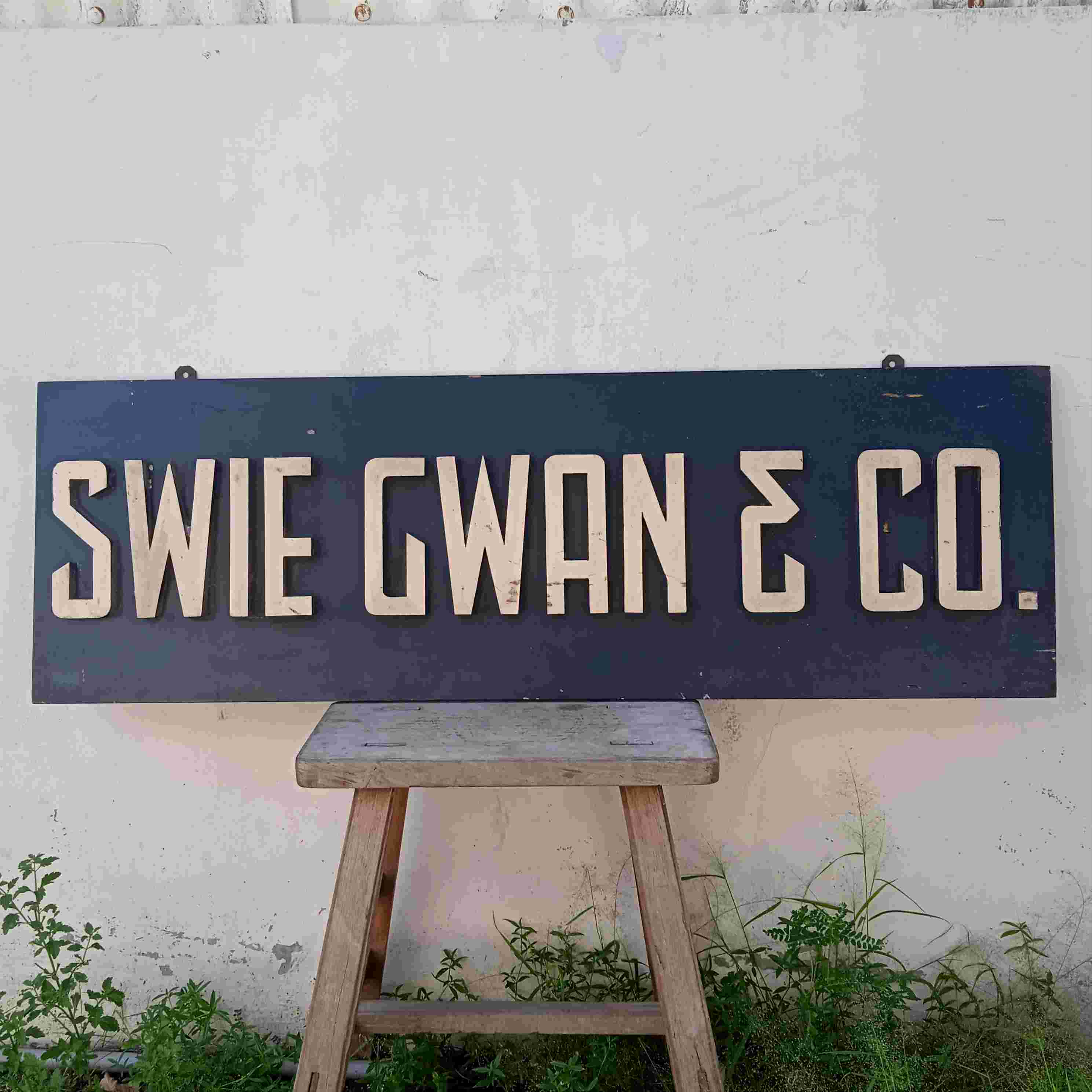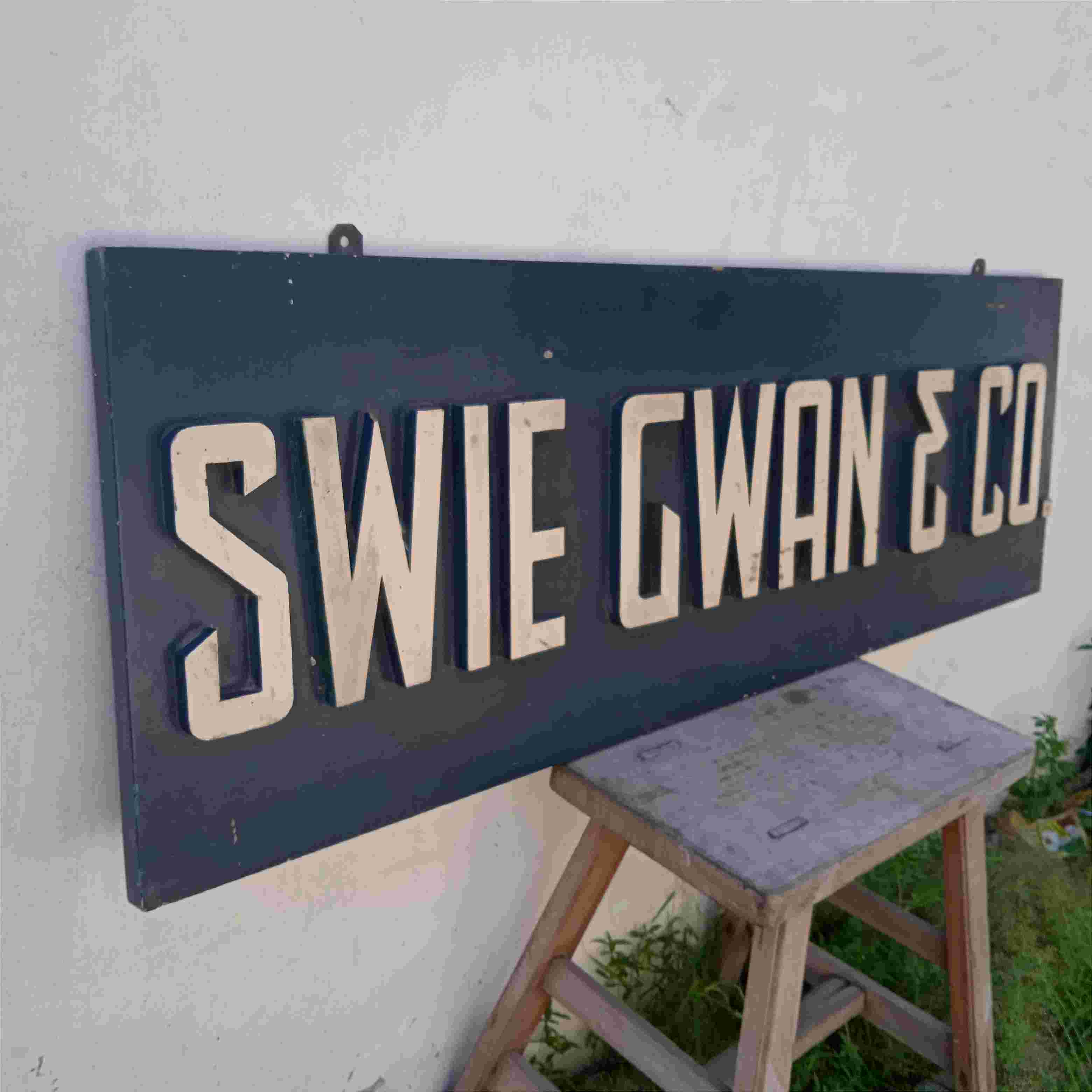 Antik Papan Nama Perusahaan Era Kolonial SWIE GWAN & CO Kayu Jati