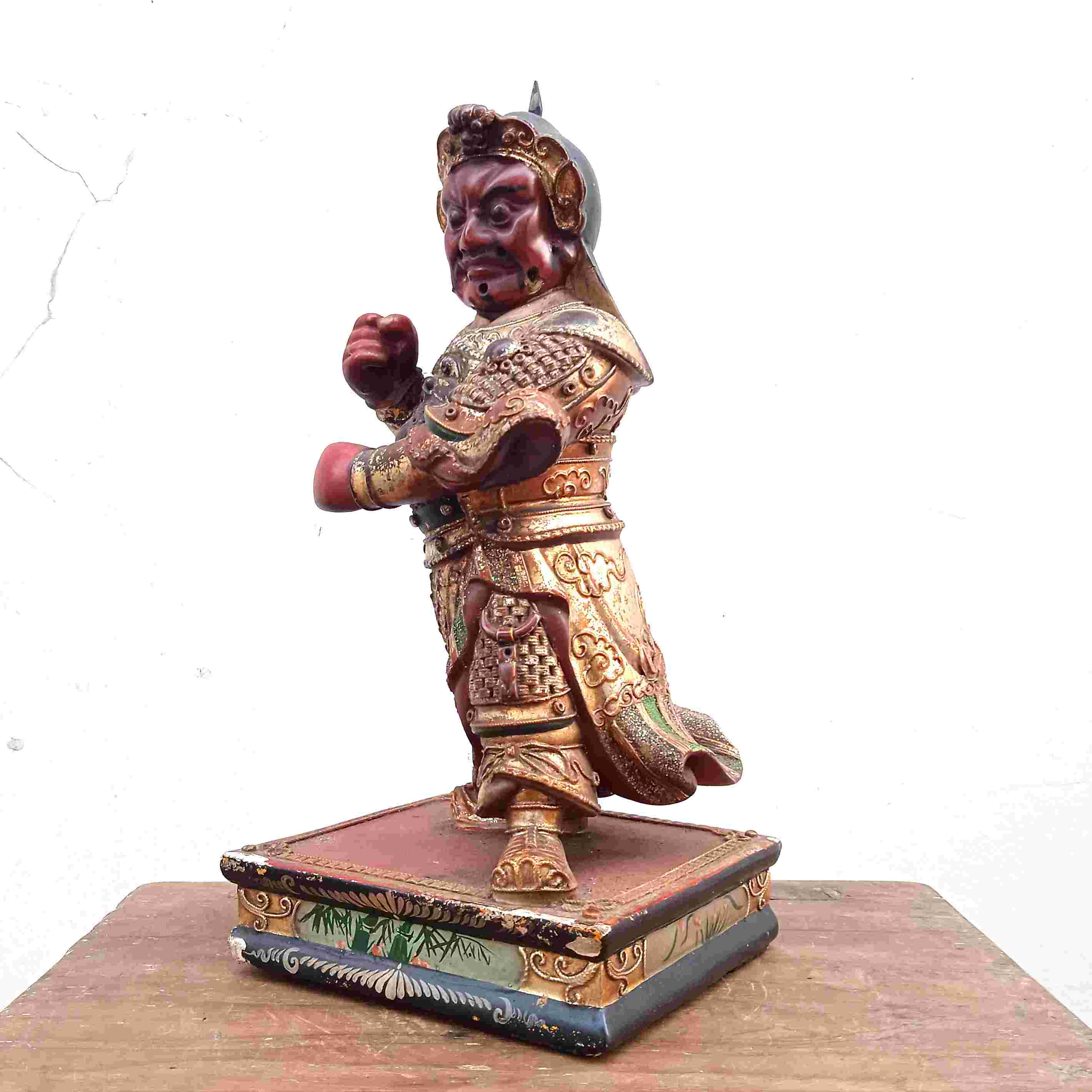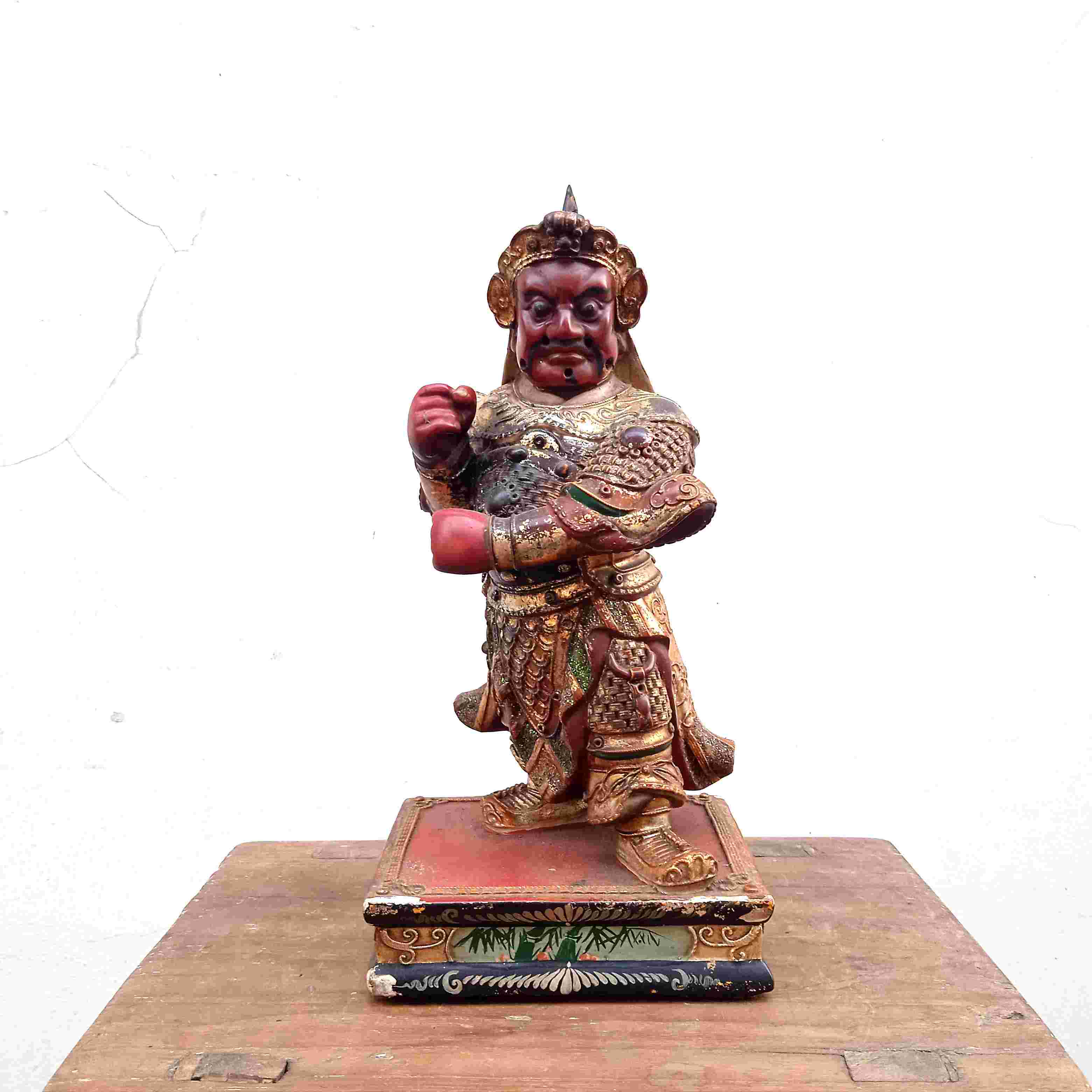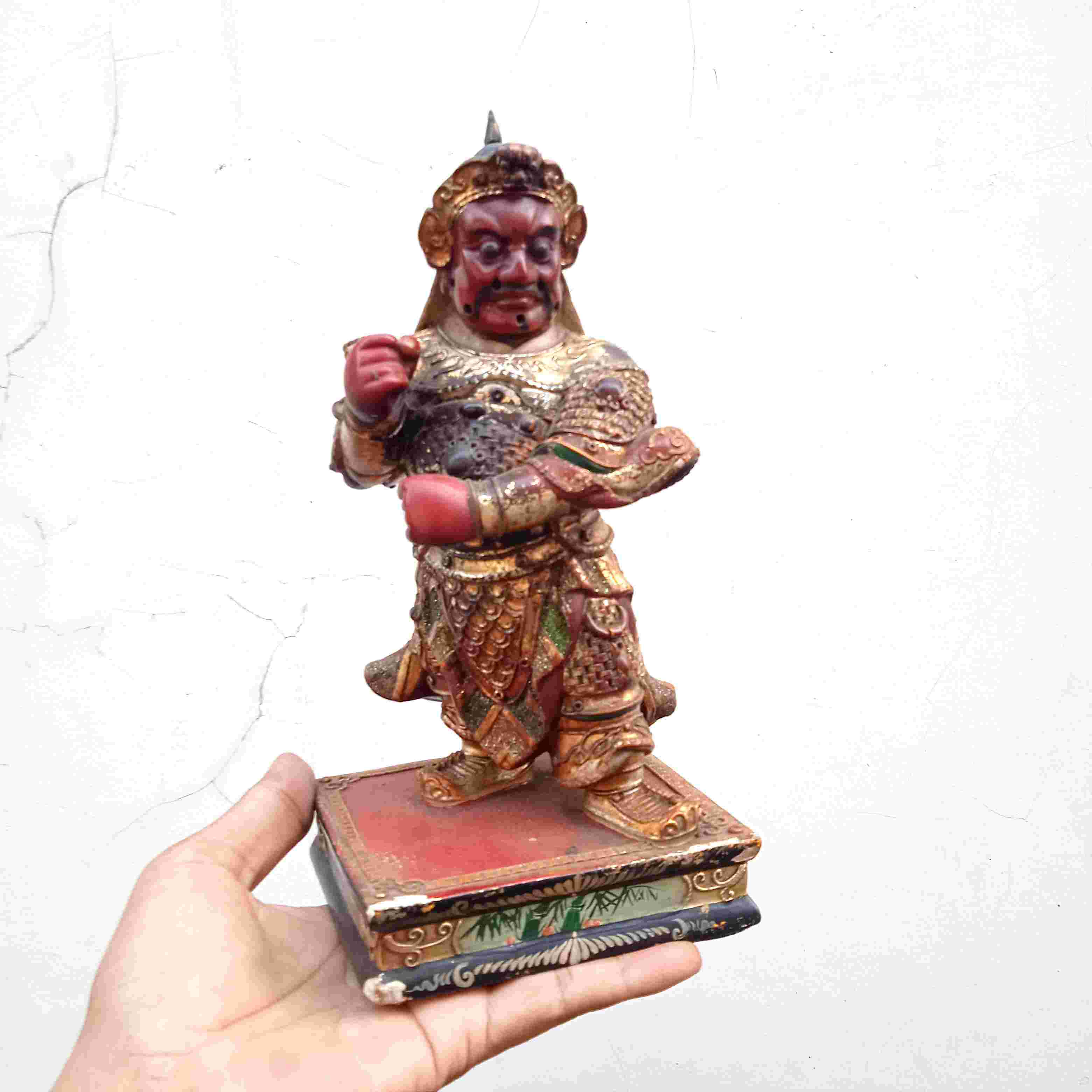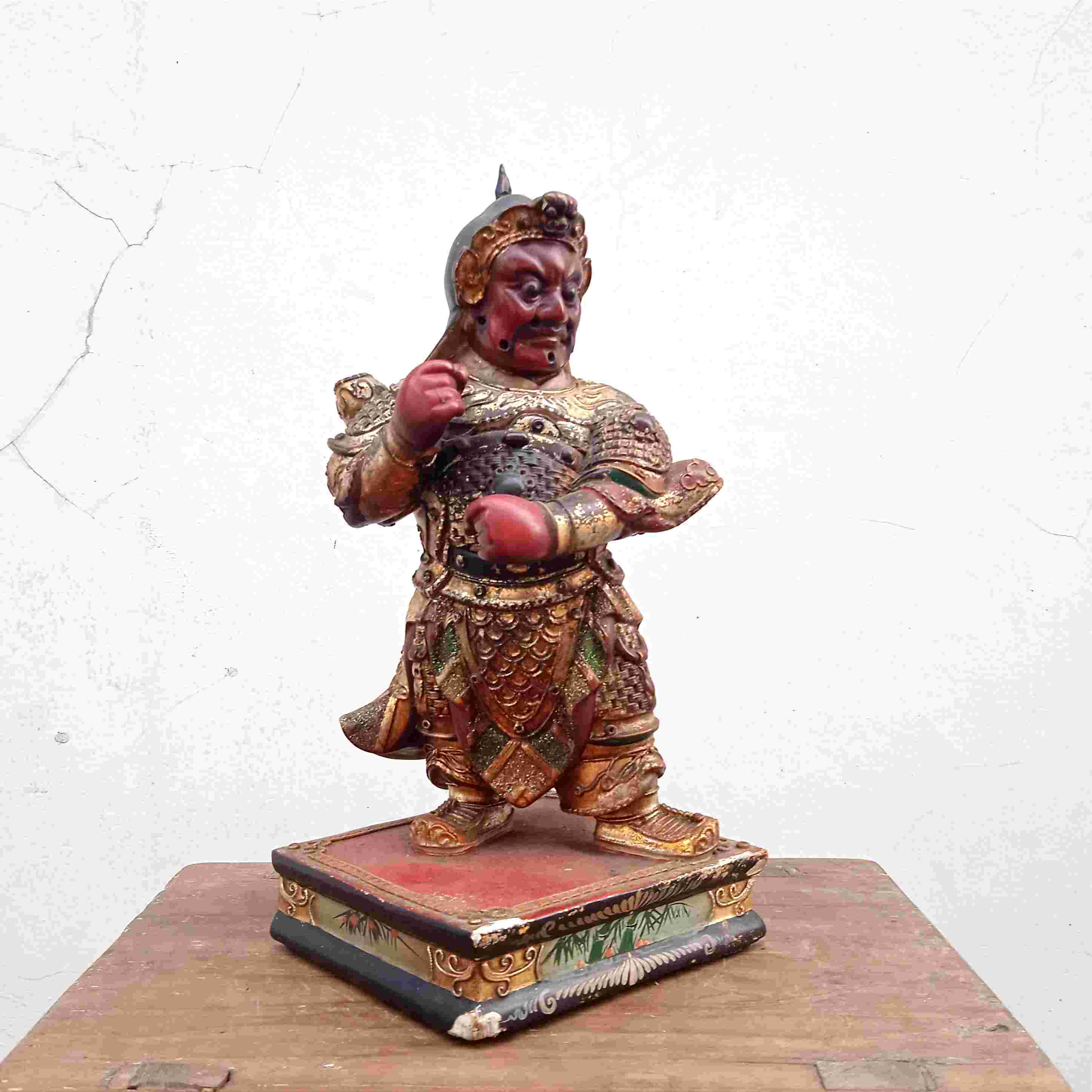 Antik Patung Penjaga Cina Bahan Kayu T.23cm Utuh Kuno
