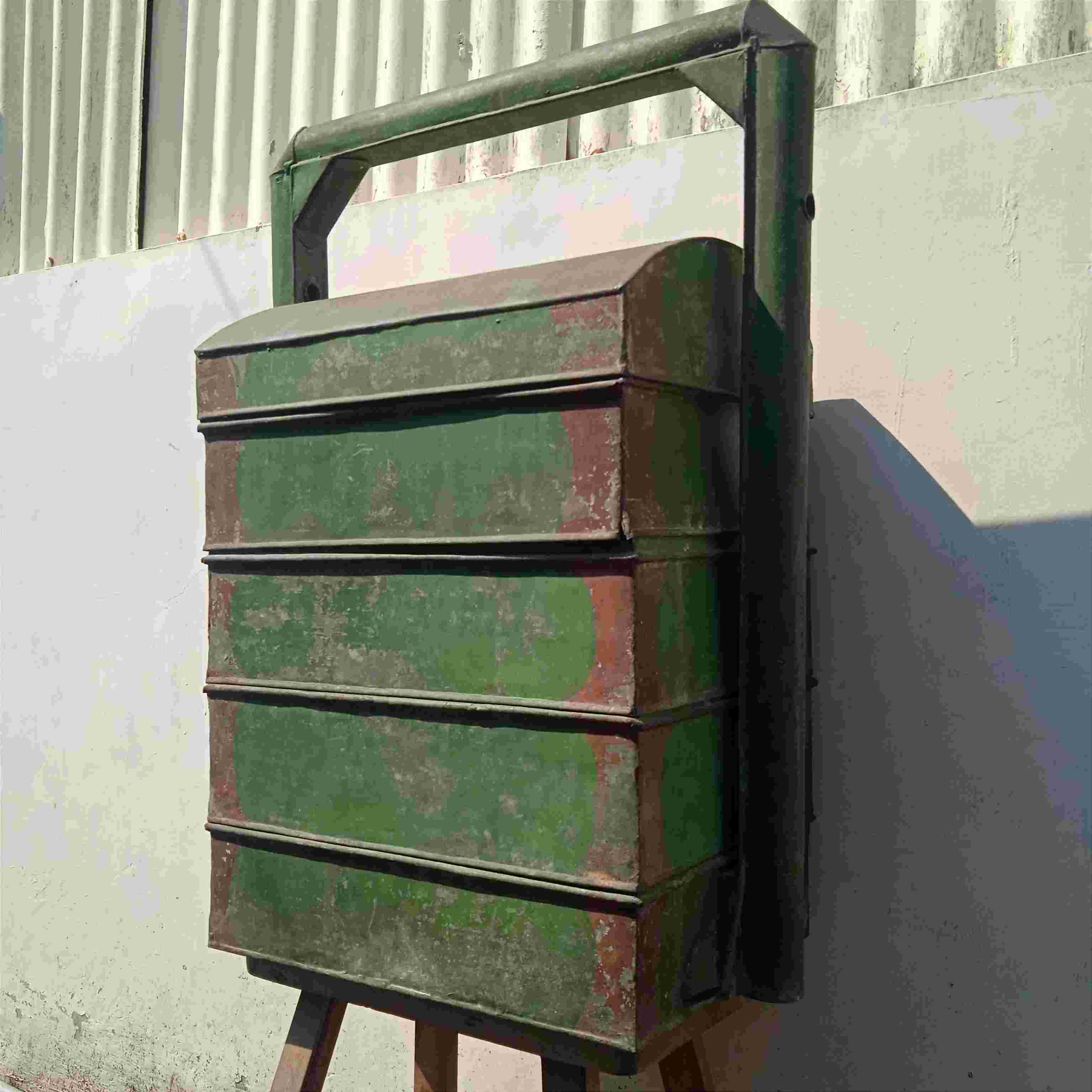 Tenong Jinjing Peranakan Tua Bahan Seng Tebal Ukuran Besar dan Berat - Panjang : 55 cm - Lebar : 32 cm - Tinggi : 74 cm Warna Masih Asli Lama