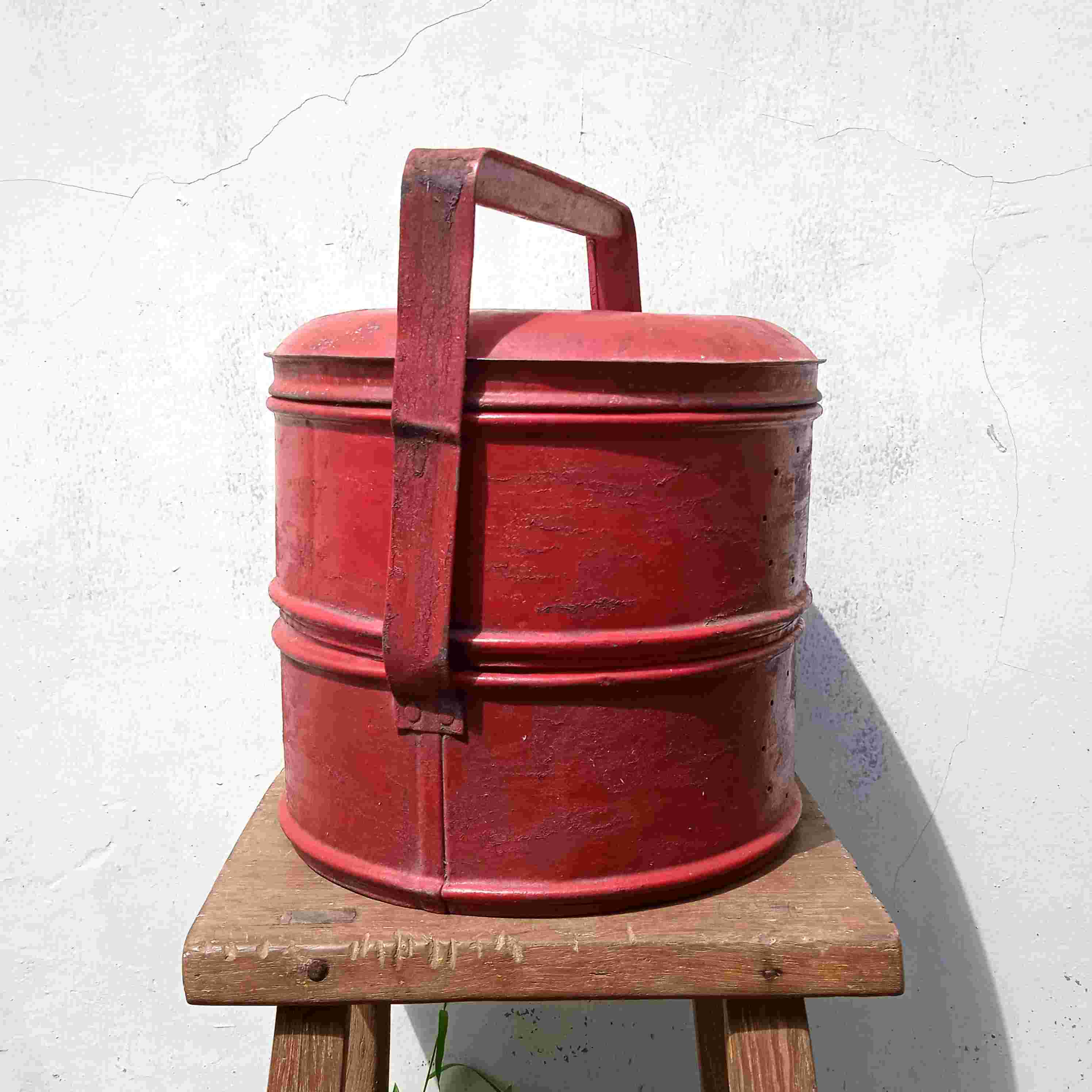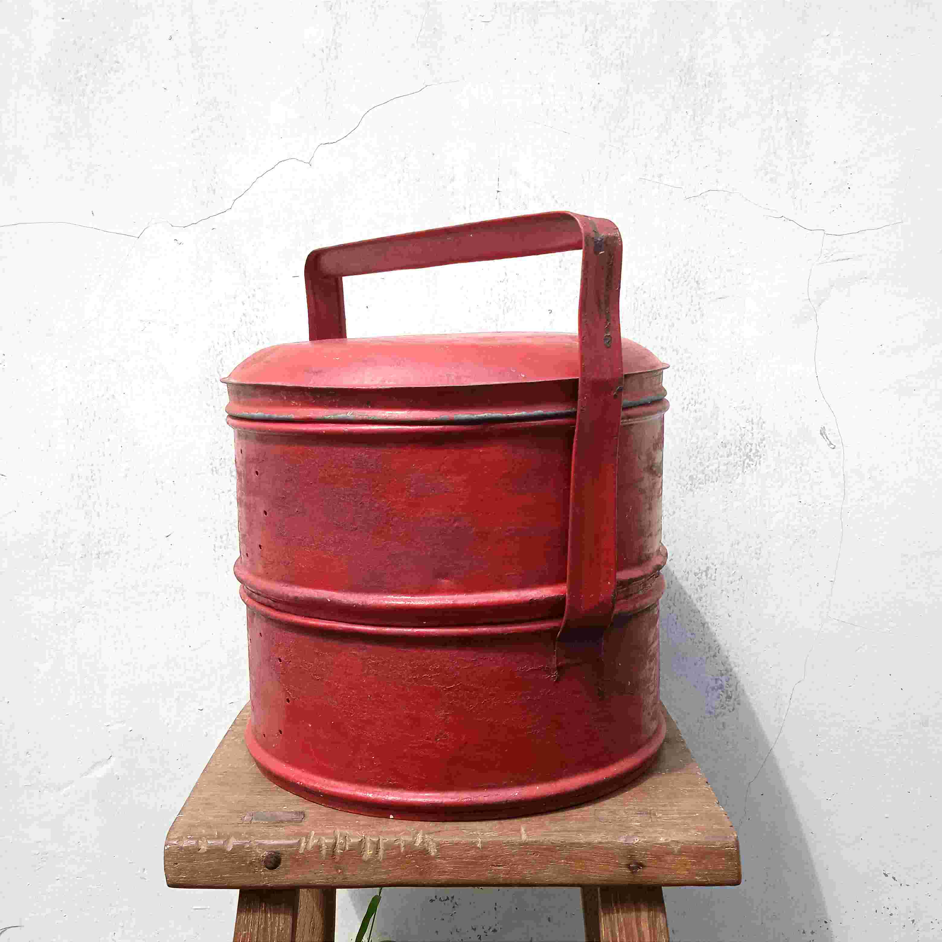 Antik Tenong Peranakan Dua Susun Uk.Kecil Logam Warna Merah Asli Tua