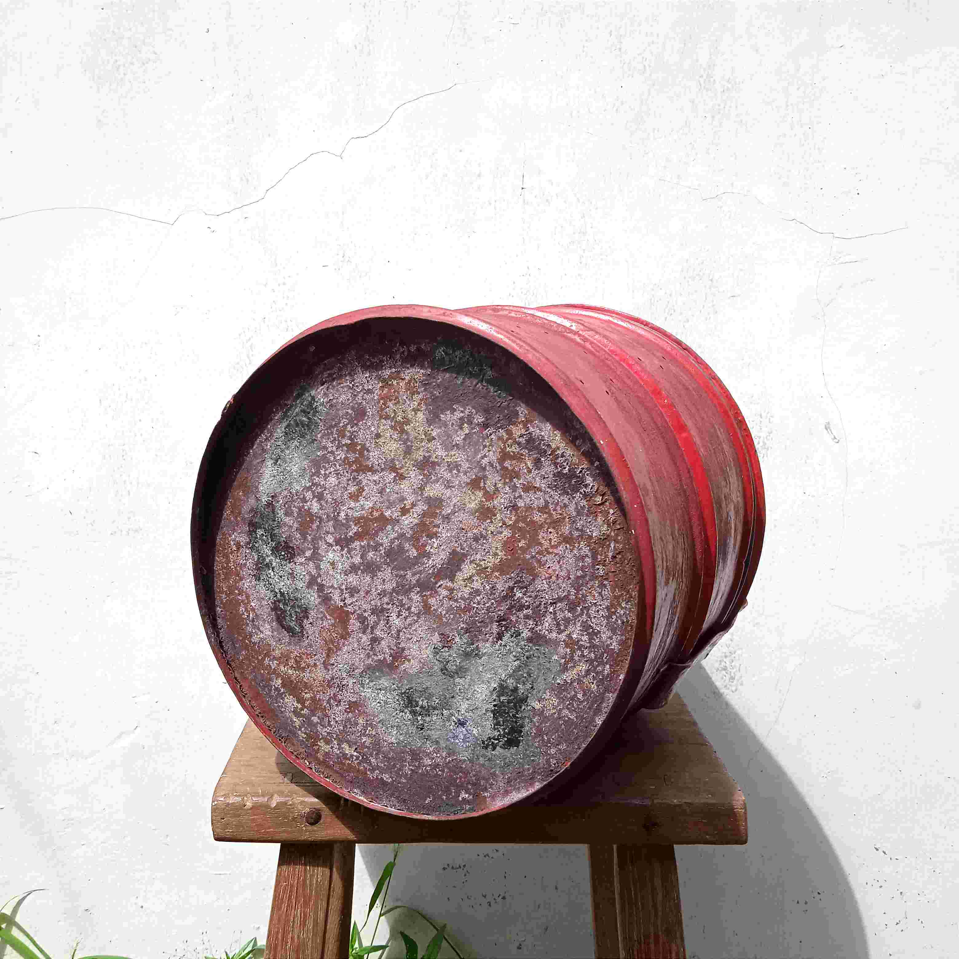 Tenong Peranakan Bahan Logam Blenden (Seng Tebal) Warna Merah Masih Aslinya (Original) Ukuran Kecil : ~ Diameter : 23 cm ~ Tinggi : 27 cm Kondisi Utuh, Tidak Lubang/Kropos Layak Display Ruangan Vintage Anda Minat Silahkan