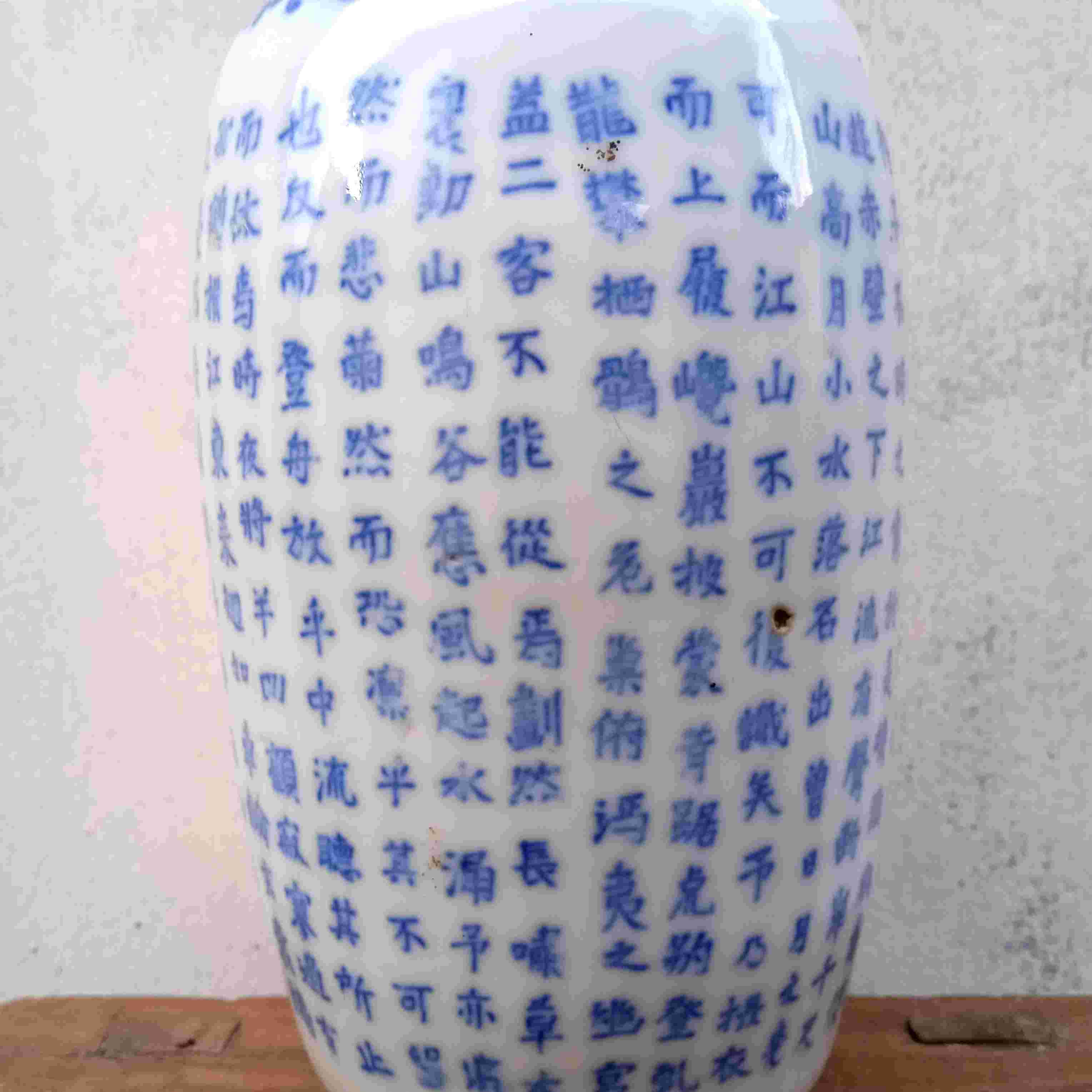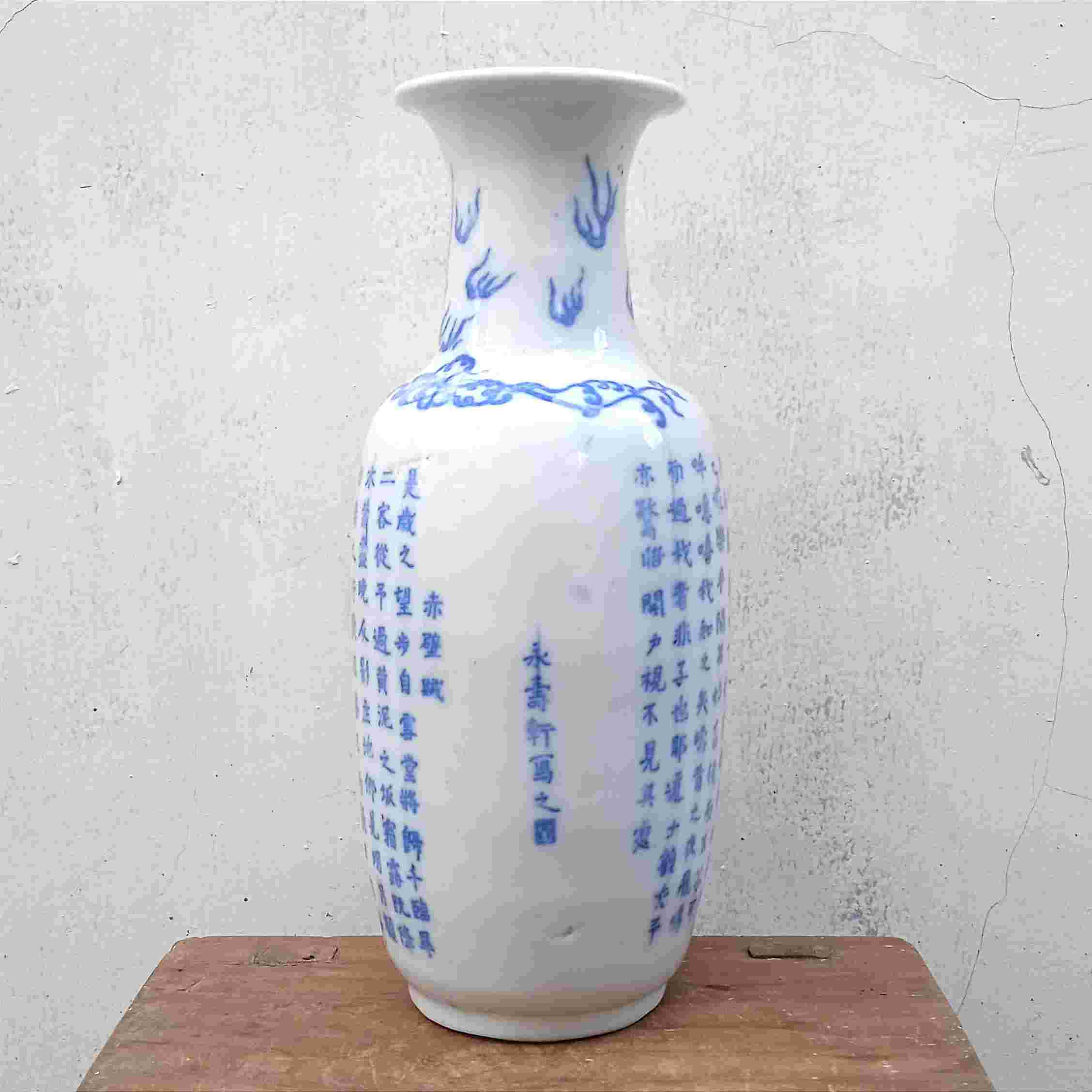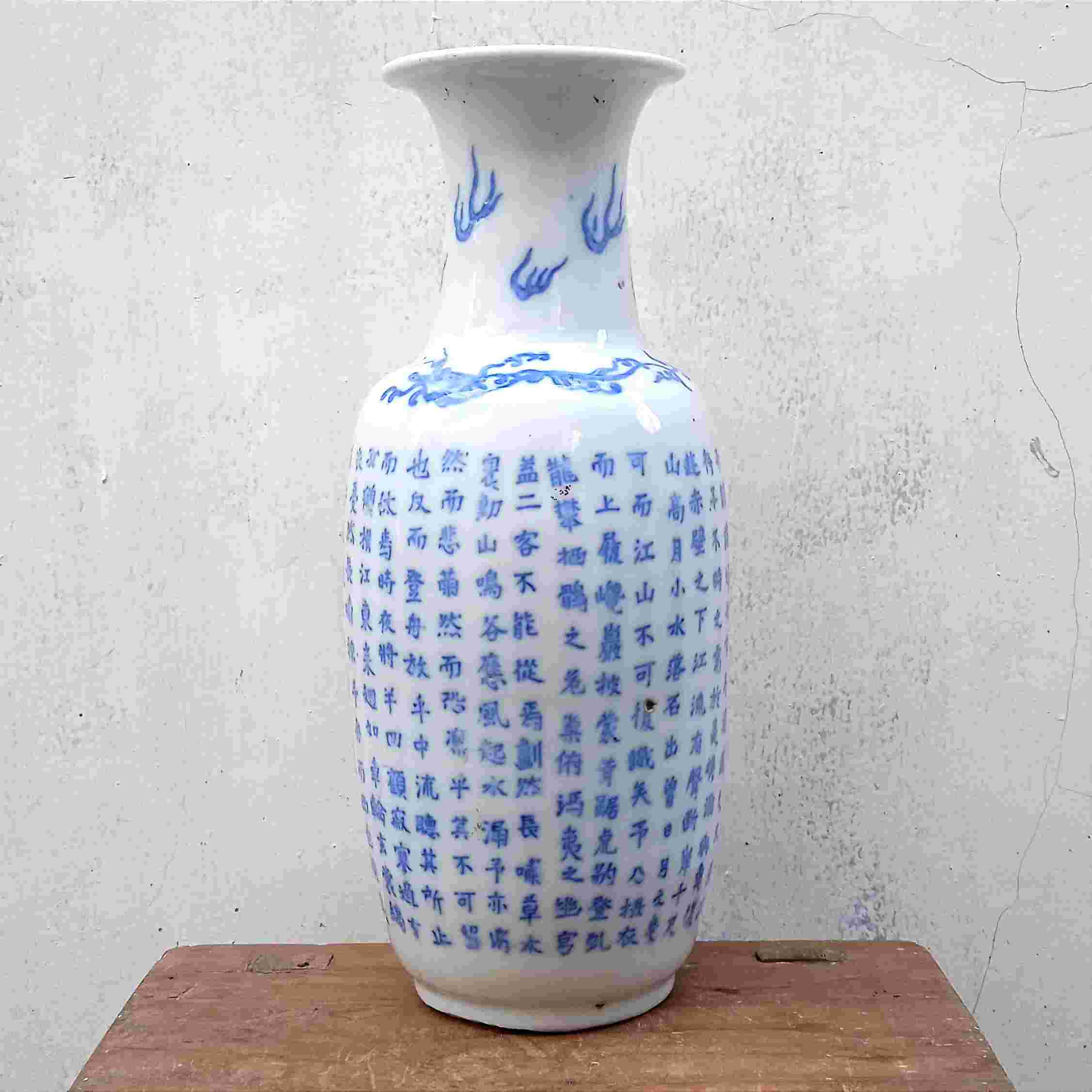 Vas Porselen Cina Lukis Motif Kaligrafi Cina Ukuran : - Tinggi : 28 cm - Diameter : 13 cm Kondisi Mulut Ada Hair Line Minat Silahkan