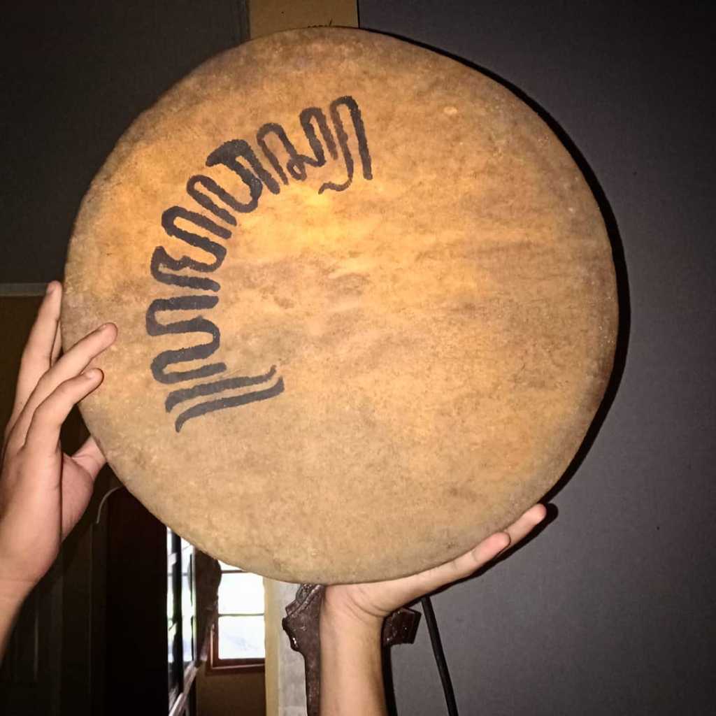 Antique traditional instrument.Diameter 36cm ,tinggi 15cm.Masih berfungsi.Material: kayu & kulit.