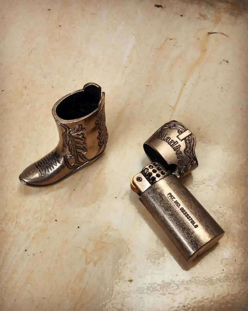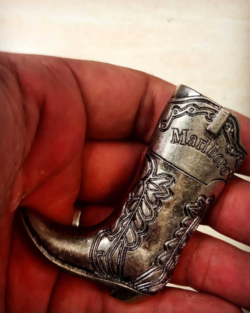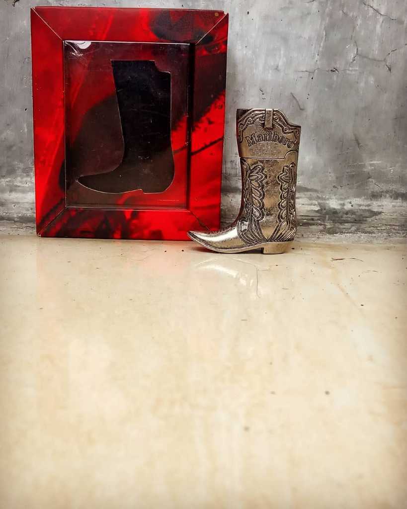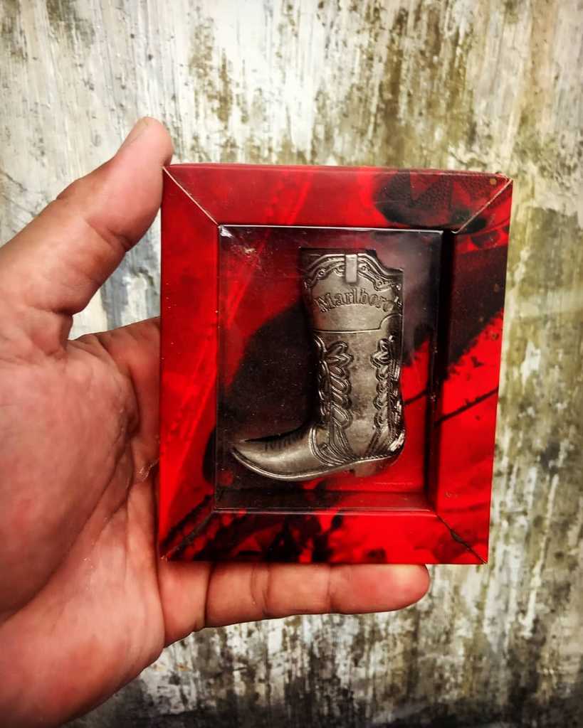 Korek Api souvenir rokok "MARLBORO", bentuk sepatu koboy.NOS, komplit berikut tempatnya. Belum pernah dipakai.Mulus..
