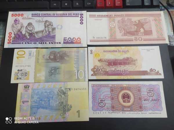 1Lembar Uang cambodja1Lembar uang China1Lembar uang Belarus1Lembar uang Ukraina1Lembar uang Serbia1Lembar uang Peru