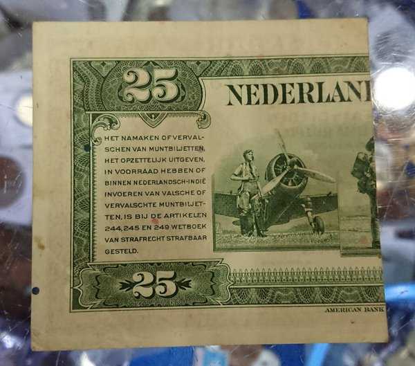 BL2500 Uang Senering 25 Gulden Tahun 1943 Bekas Sesuai Gambar