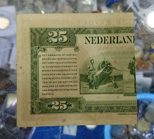 BL2501 Uang Senering 25 Gulden Tahun 1943 Bekas Sesuai Gambar