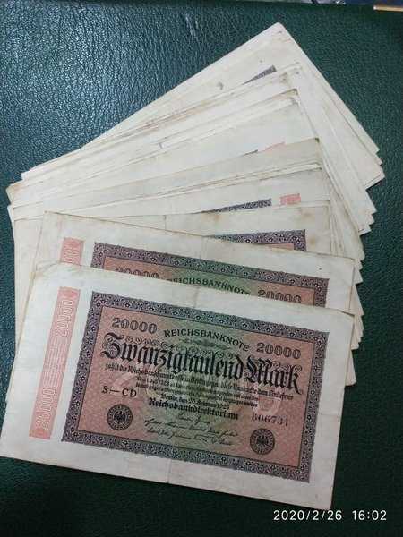 BL2649 Uang Kertas Asing Jerman 20.000 Mark Reichsbanknote 1923 Kondisi Terpakai