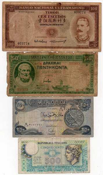 BL3268 Set 4 Lembar Uang Asing Lama Berbeda Asli Ready