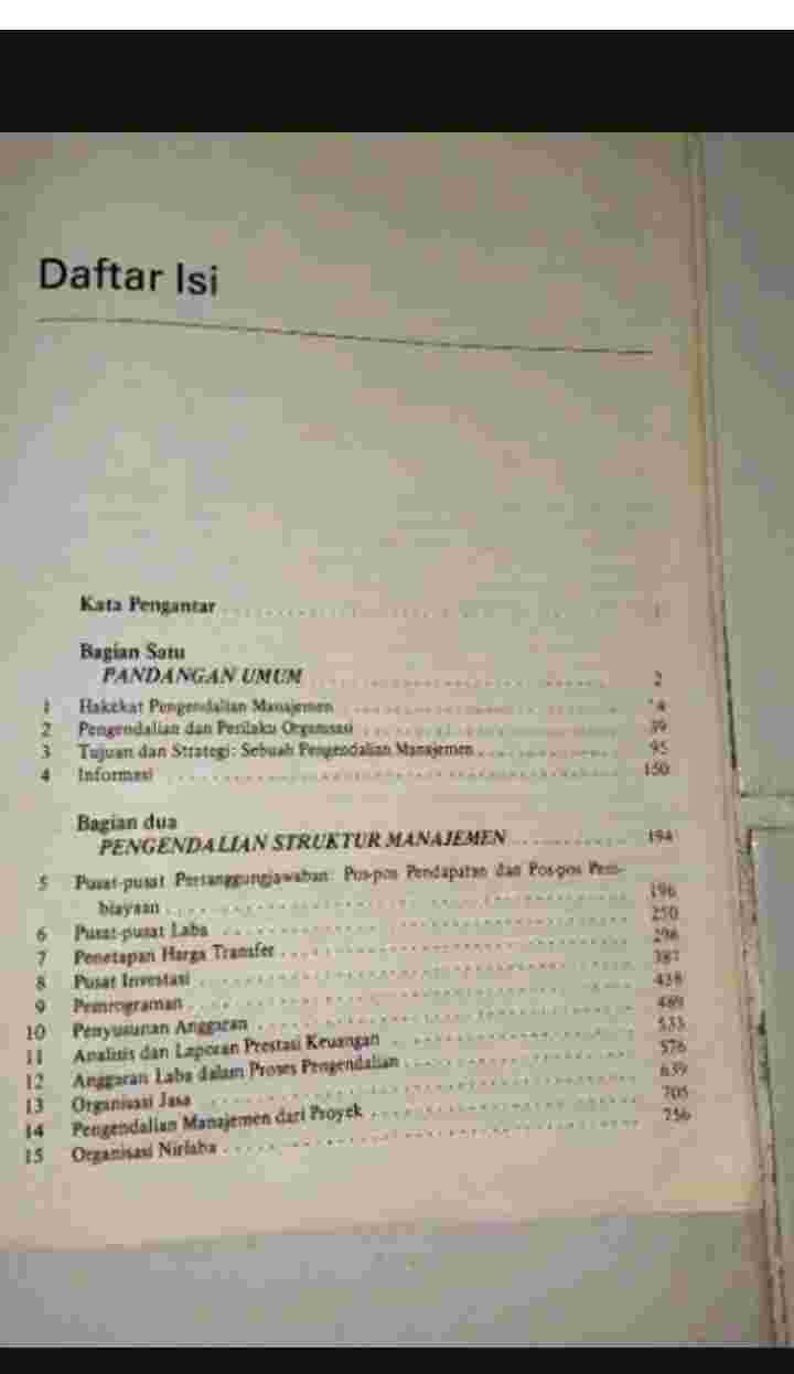 BUKU SISTEM PENGENDALIAN MANAJEMEN Terbitan ERLANGGA Tahun 1985 Soft Cover Dalam Bahasa INDONESIA Seukuran BUKU TEBAL Tebal 795 halaman Berat 1 Kg Moga Bermanfaat...