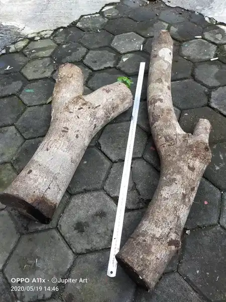 Bahan Kayu Jin origin merapi bentuk unik. Seperti kepala kerbau. Panjang sekitar 1 meter lebih. Jenis kayu keras kayu jin